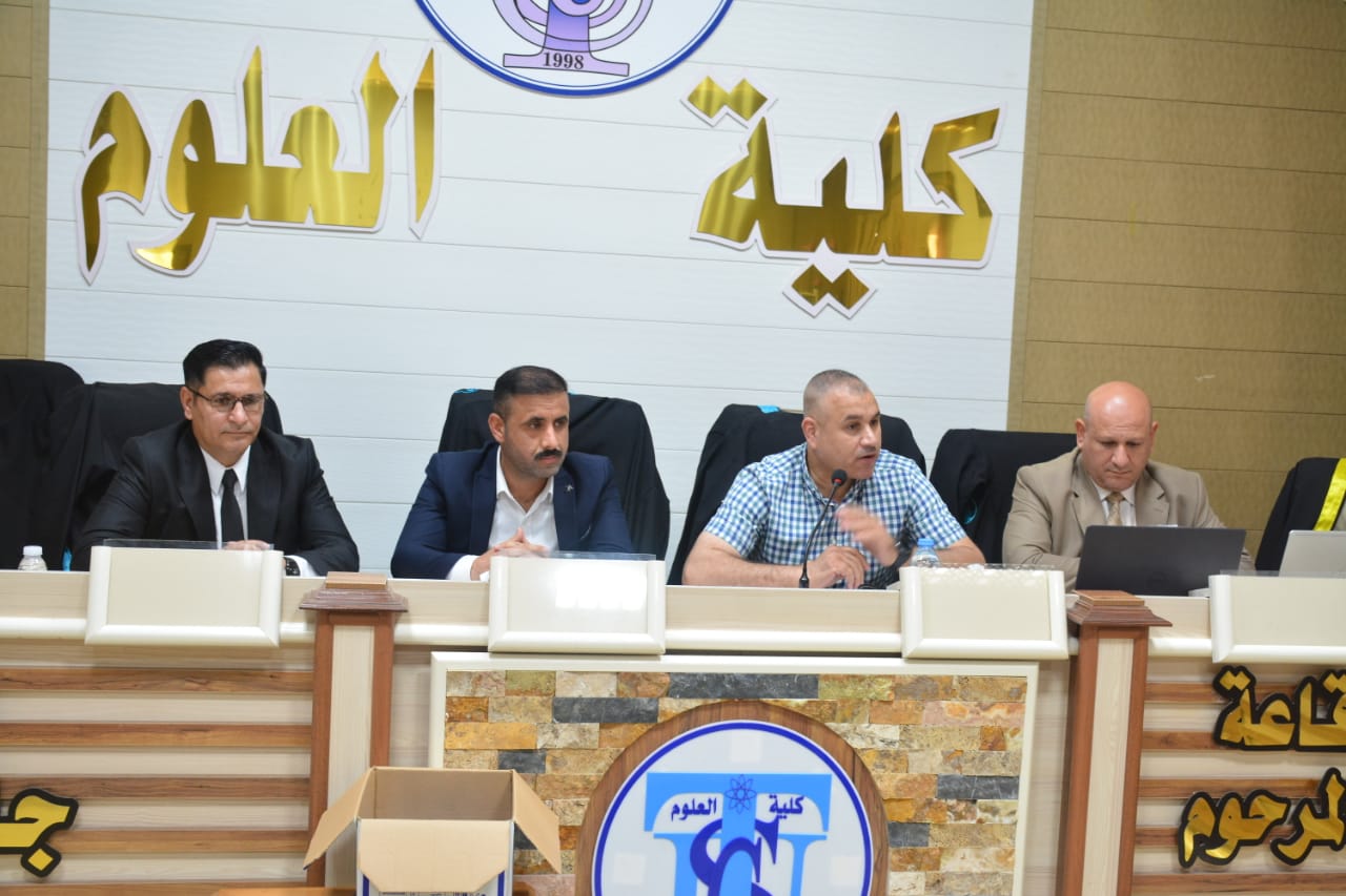 تناولت الندوة التي احتضنتها قاعة الدكتور جابر حميد عليوي في كلية العلوم التعريف بالمواد الخطرة والكيمياوية وانواعها واستخداماتها المزدوجة وتأثيرها على الانسان من الناحية الصحية والبيئيية والقواعد المتبعة لتخزين المواد الكيمياوية والمواد الخطرة مثل حفظ العناصر المشعة وبما يؤمن عدم تسربها وانتشار الإشعاع ومتابعة النظافة الصحية داخل المختبرات ومتابعة السجلات الخاصة بالمواد الكيمياوية والبيولوجية الخطرة والسامة وسجلات الصرف ودقة أعدادها وتأتي هذه الندوة لغرض نشر ثقافة السلامة والأمن الكيميائي والبيولوجي وتوعية منتسبي الجامعة اولا ثم المجتمع عموما فيما يتعلق بالسلامة والامن الكيميائي والبيولوجي بالاضافة الى تحقيق امن وسلامة الاشخاص من خلال توفير عدة وسائل وملابس السلامة للعاملين وتوفير اجهزة ومعدات الاسعافات الاولية بالمخازن