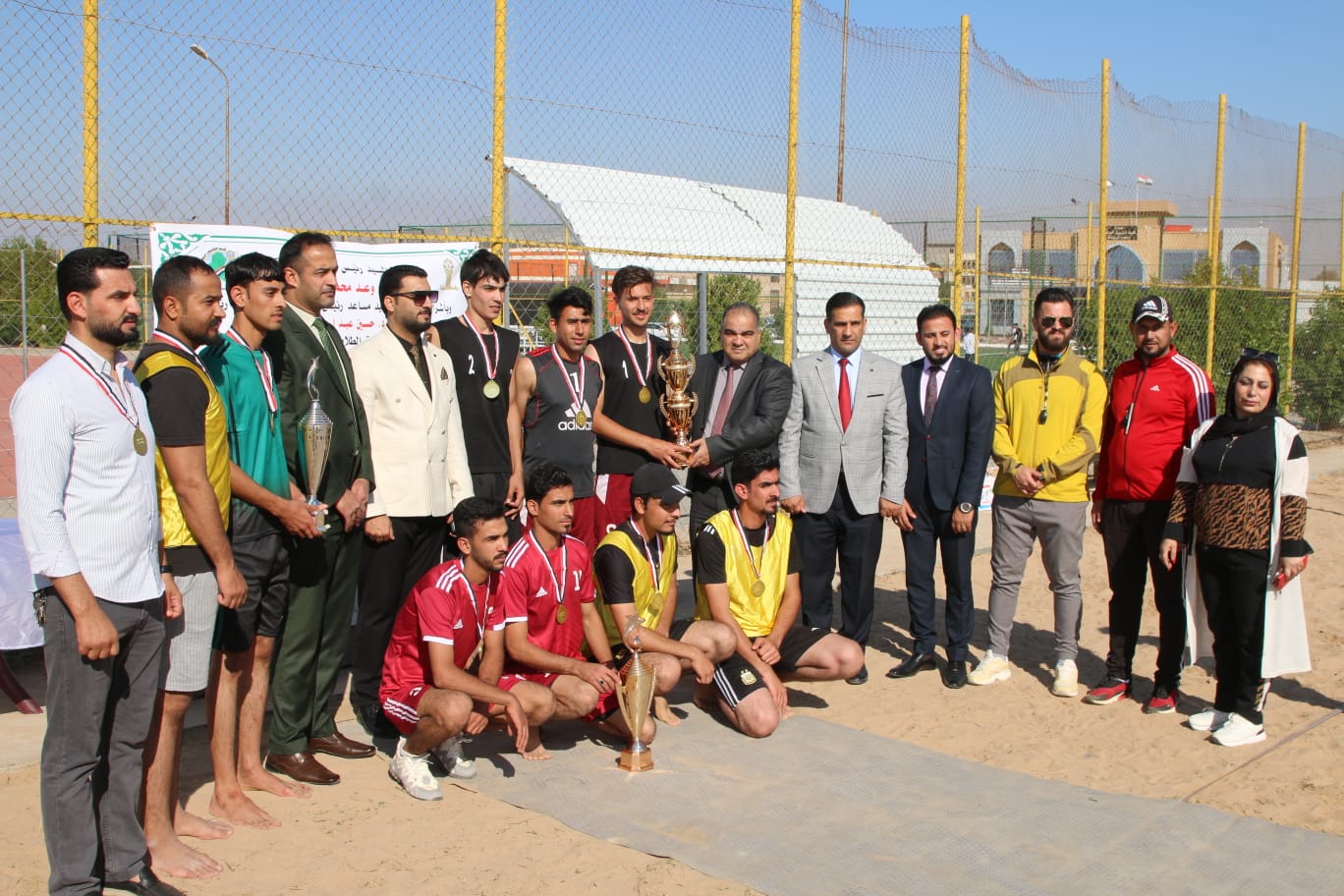 بتوجيه من الاستاذ الدكتور وعد محمود رؤوف رئيس جامعة تكريت وبحضور الاستاذ الدكتور حسن حسين ابراهيم مساعد رئيس جامعة تكريت للشؤون العلمية اختتمت في كلية التربية البدنية وعلوم الرياضة بطولة كرة الطائرة الشاطئية التي اقامها قسم النشاطات الطلابية في رئاسة الجامعة على ملاعب الكلية