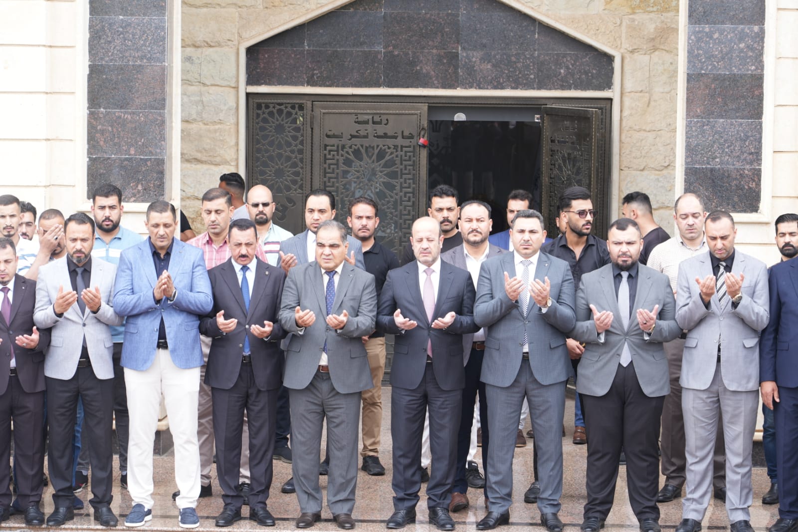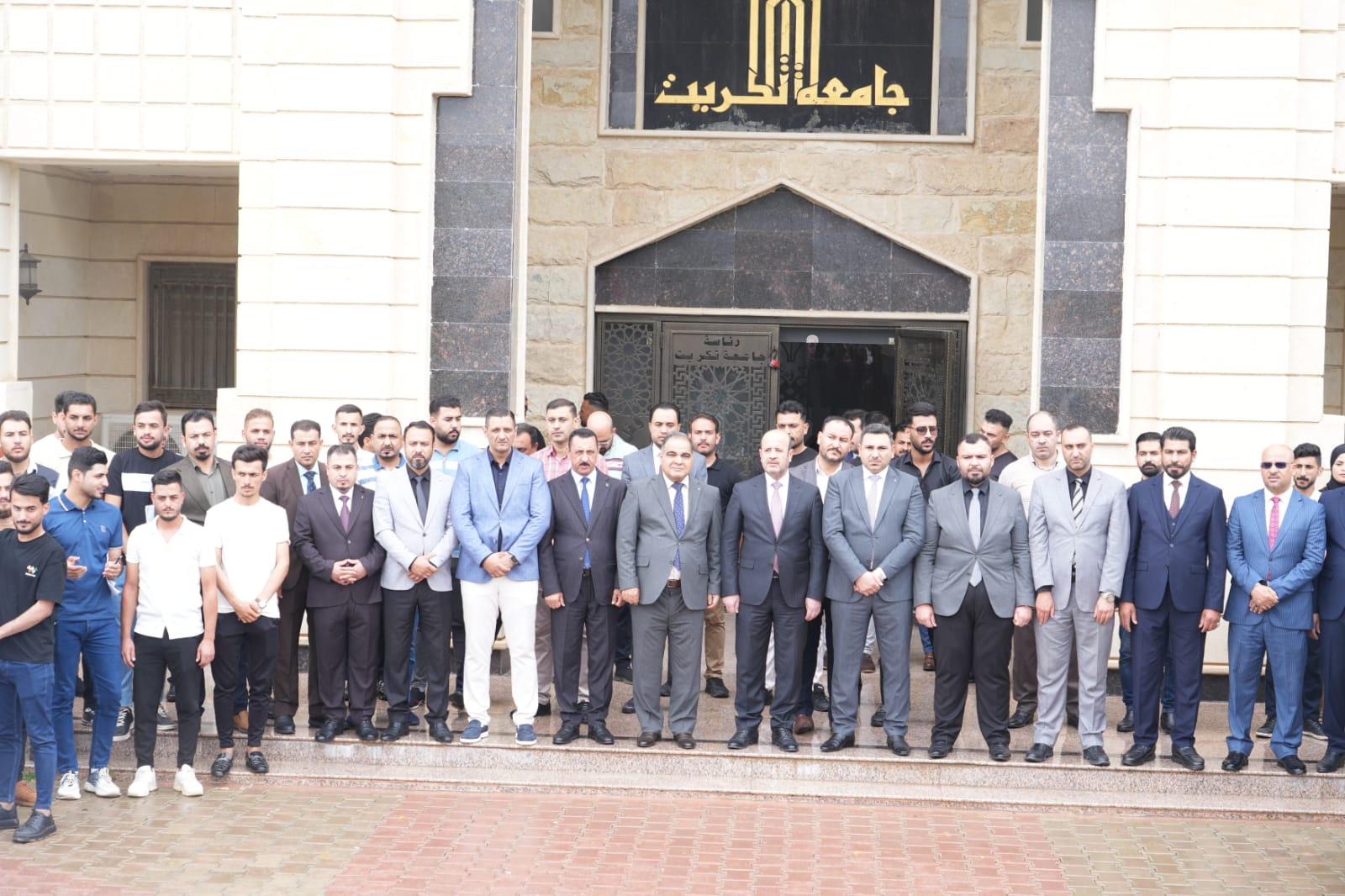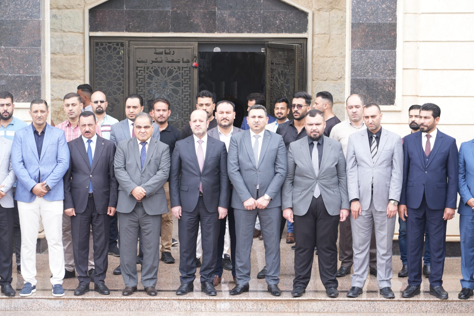 بناءً على توجيه معالي الدكتور نعيم العبودي وزير التعليم العالي والبحث العلمي بقيام الجامعات بإجراء وقفة تضامنية مع الشعب الفلسطيني الصابر المجاهد وبأشراف وحضور الاستاذ الدكتور وعد محمود رؤوف رئيس جامعة تكريت نظمت جامعة تكريت وقفة تضامنية اليوم الخميس الموافق 2 أيار أمام مبنى رئاسة الجامعة بمشاركة مساعدي رئيس الجامعة للشؤون الادارية والعلمية وعدد من عمداء الكليات مع كوكبة من اساتذة ومنتسبي وطلبة الجامعة.