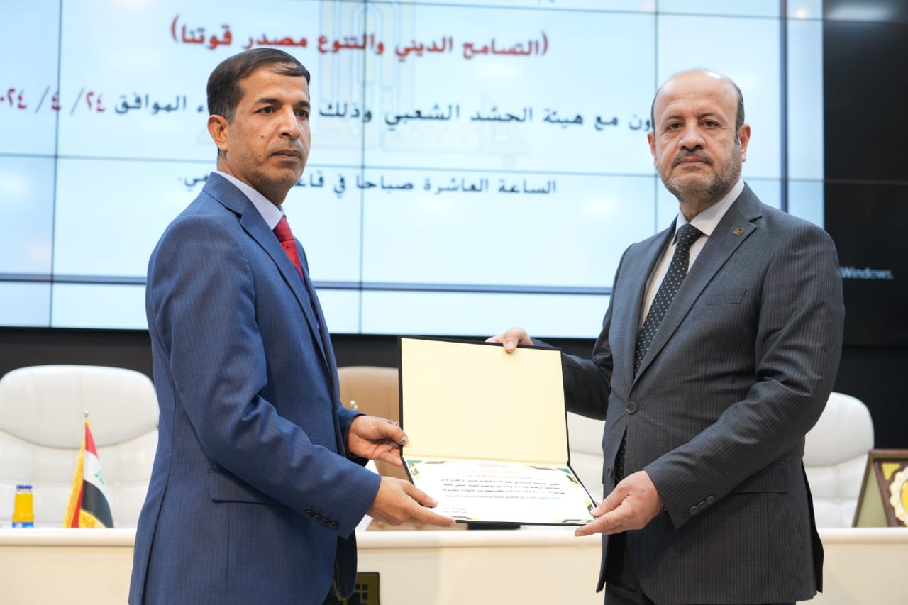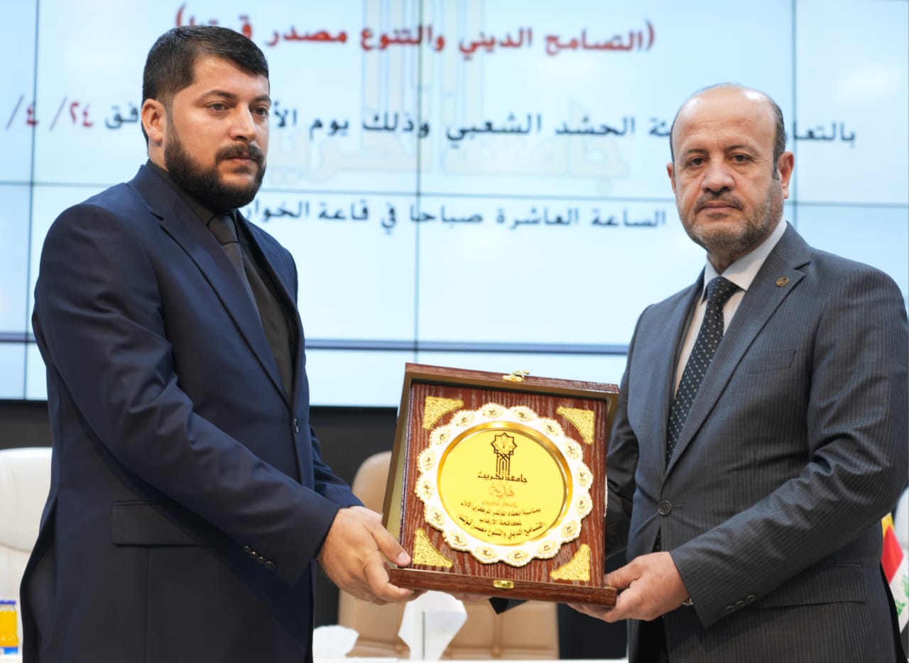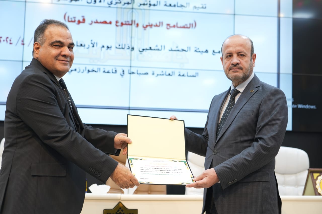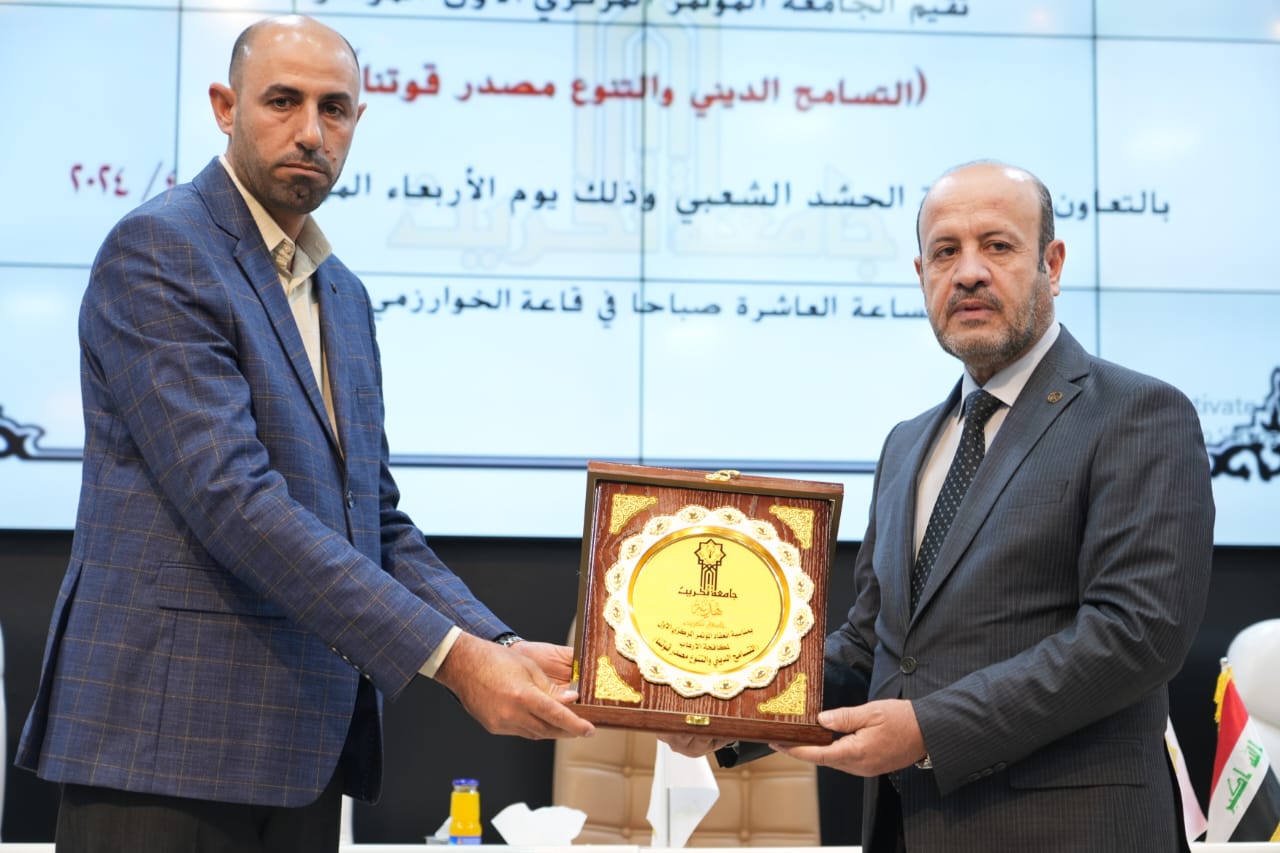 برعاية معالي وزير التعليم العالي والبحث العلمي الدكتور نعيم العبودي وبإشراف الاستاذ الدكتور وعد محمود رؤوف رئيس جامعة تكريت وبالتعاون مع هيئة الحشد الشعبي وبحضور الشيخ محمد حسن عطية نائب رئيس مجلس محافظة صلاح الدين و مساعدي رئيس الجامعة للشؤون العلمية و الاداري وعددٍ من اعضاء مجلس الجامعة وشخصيات دينية وأمنية وثقافية وإجتماعية واكاديمية اقامت رئاسة جامعة تكريت اليوم الاربعاء الموافق 24/4/2024 وعلى قاعة الخوارزمي مؤتمرها العلمي المركزي الاول الموسوم (التسامح الديني والتنوع مصدر قوتنا) .