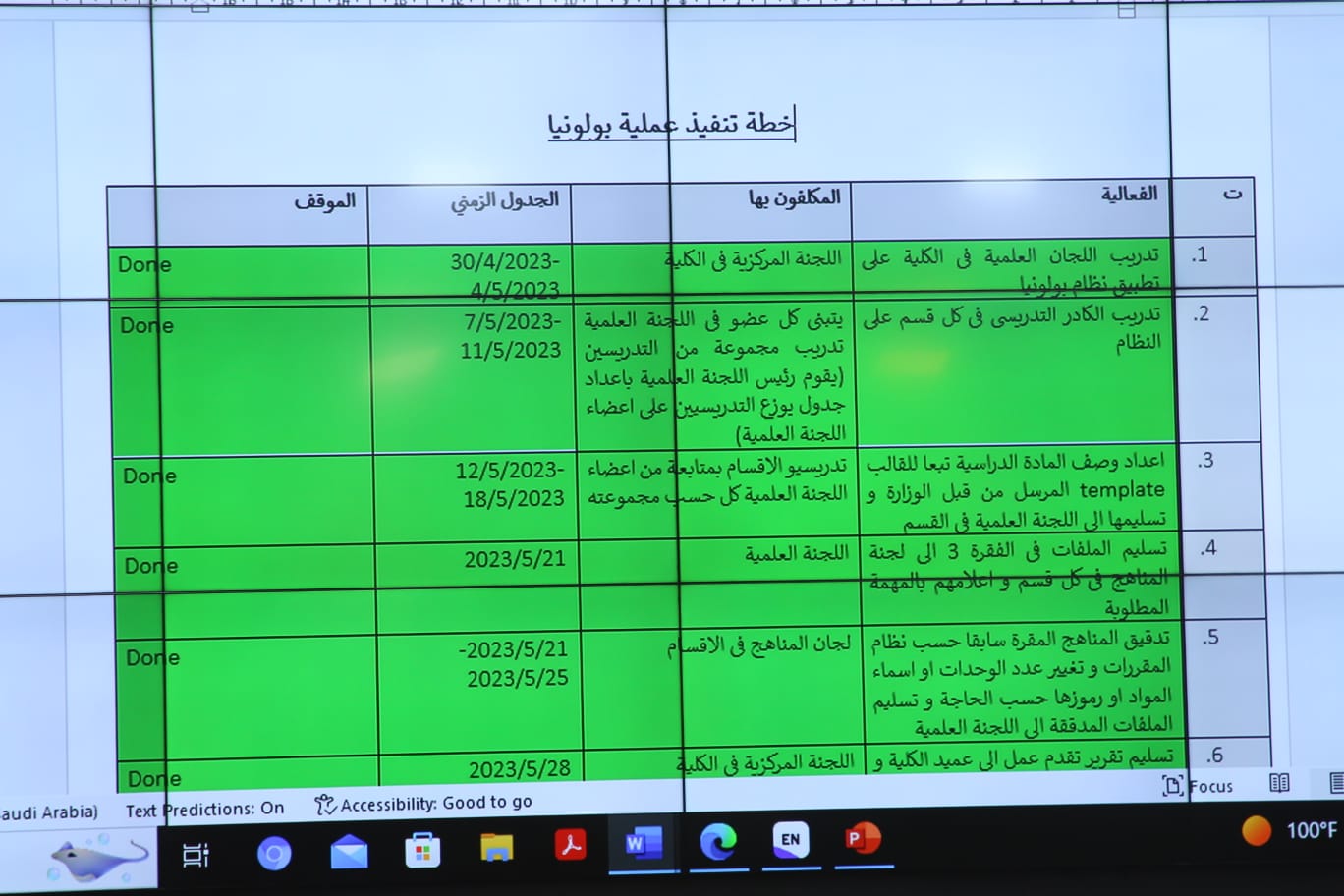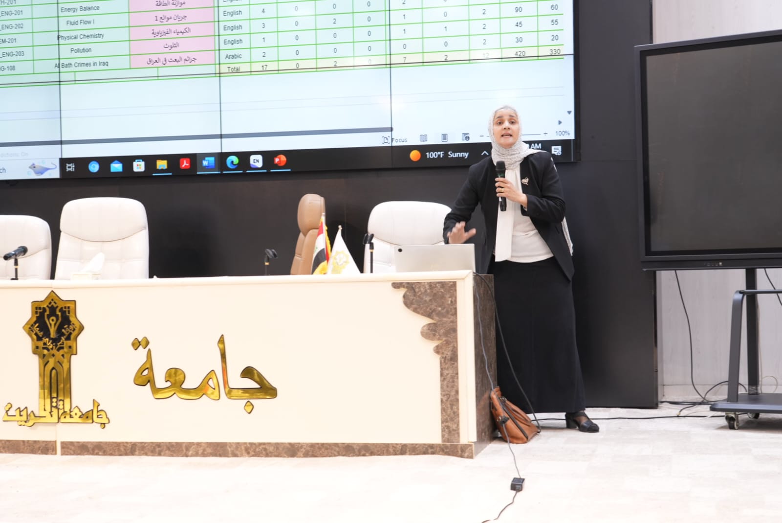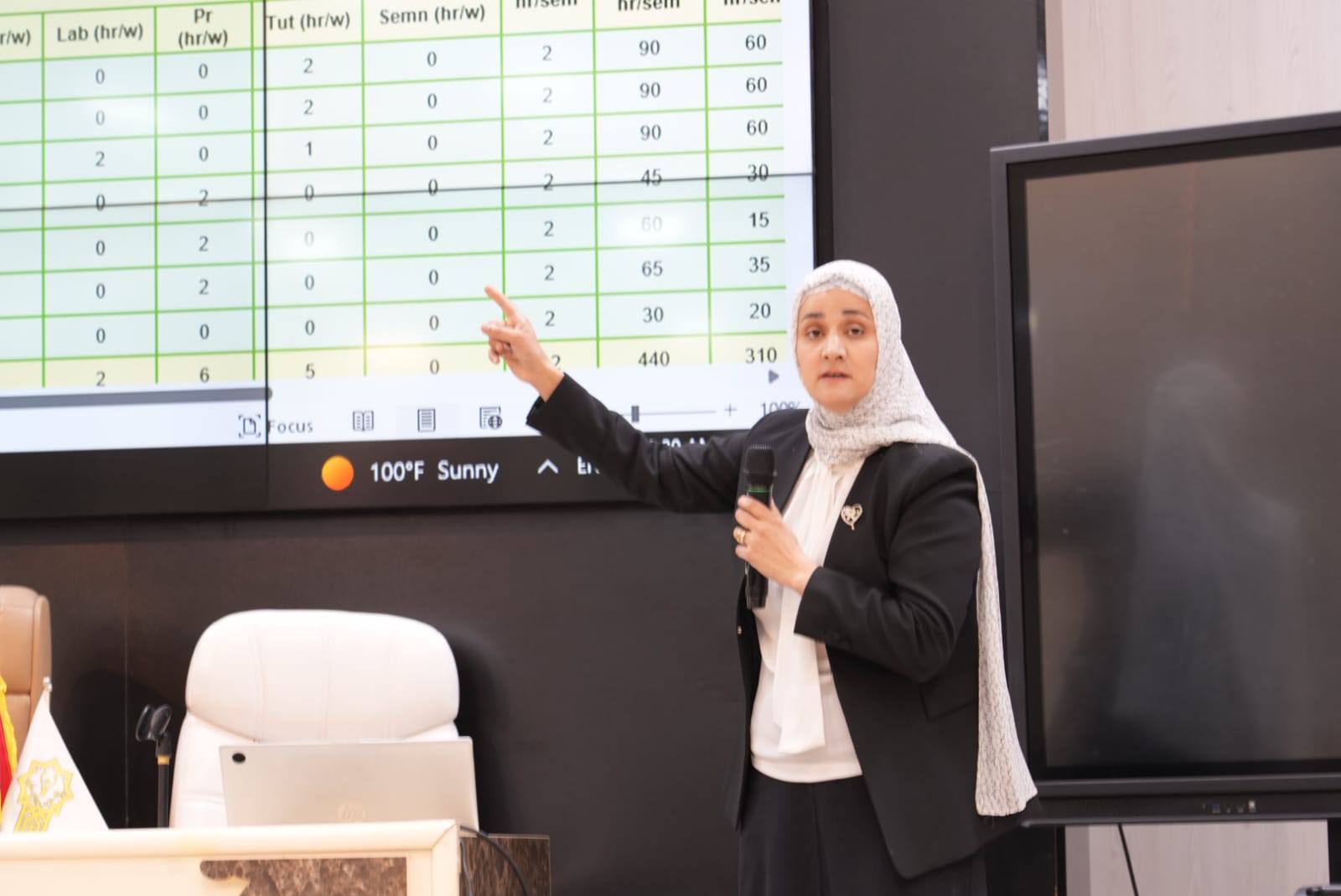 حيث ادار الورشة اللجنة المكلفة بتطبيق المسار في كلية الهندسة بالجامعة . وتطرق المحاضرون الى استعراض السياق العام لنظام مسار بولونيا وأهدافه، وكذلك تفصيل معايير توزيع التقييمات للطلبة، والمبادئ التوجيهية التي يجب اتباعها في تطبيق النظام.