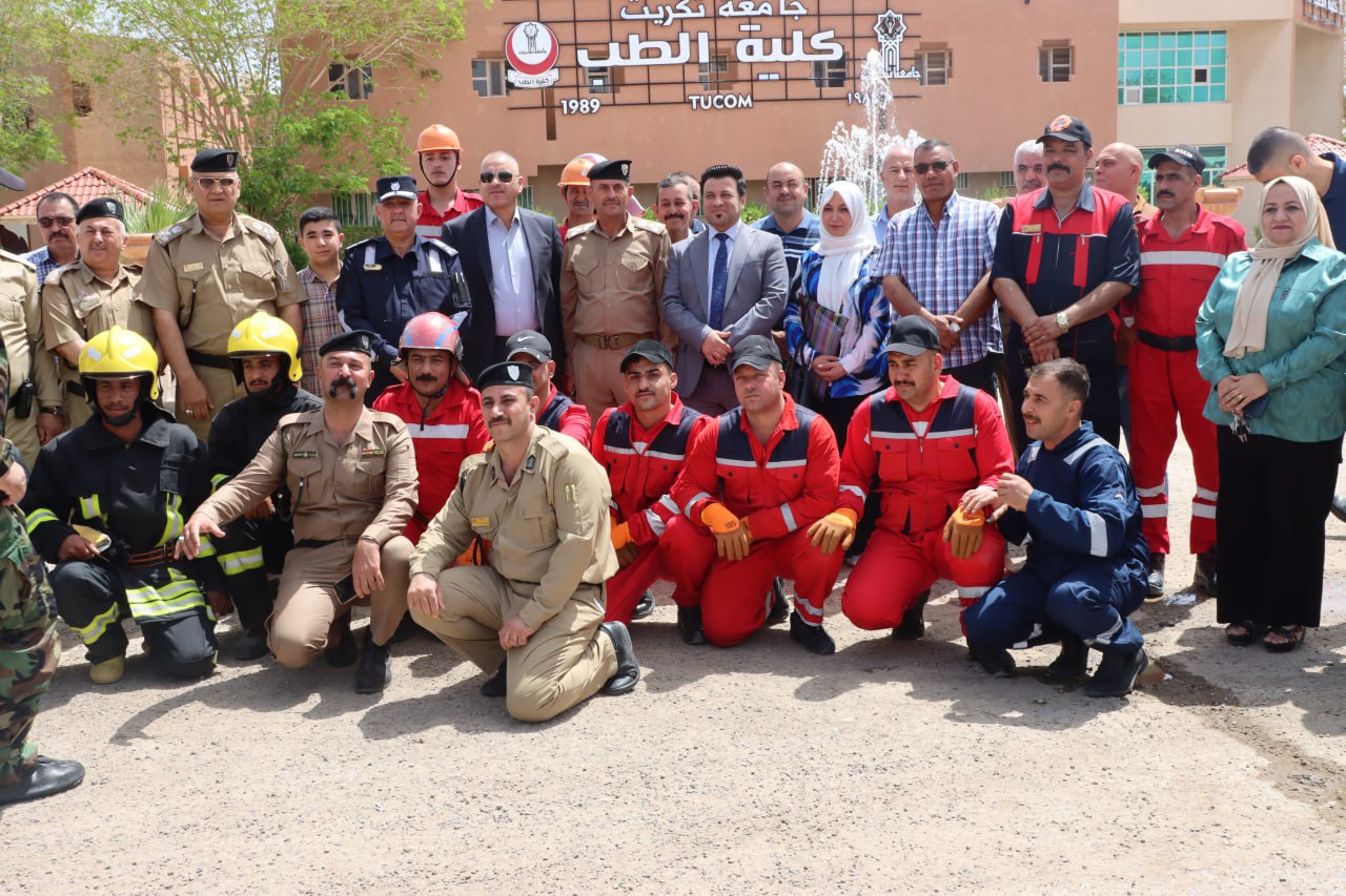 اختتمت في كلية الطب بجامعة تكريت دورة تطبيق خطط الطوارئ والاخلاء للحد من مخاطر الكوارث التي اقامتها شعبة السلامة والامن الكيميائي والبايولوجي والإشعاعي في رئاسة الجامعة بالتعاون مع مديرية الدفاع المدني في محافظة صلاح الدين بإجراء ممارسة ميدانية شاملة لتطبيق خطط الطواريء وفق البروتوكولات المتفق عليها وتضمنت الدورة ممارسة عملية لكيفية إخماد الحرائق وتقديم محاضرة توعوية عن إجراءات السلامة وأنواع المطافئ وكيفية استخدامها.