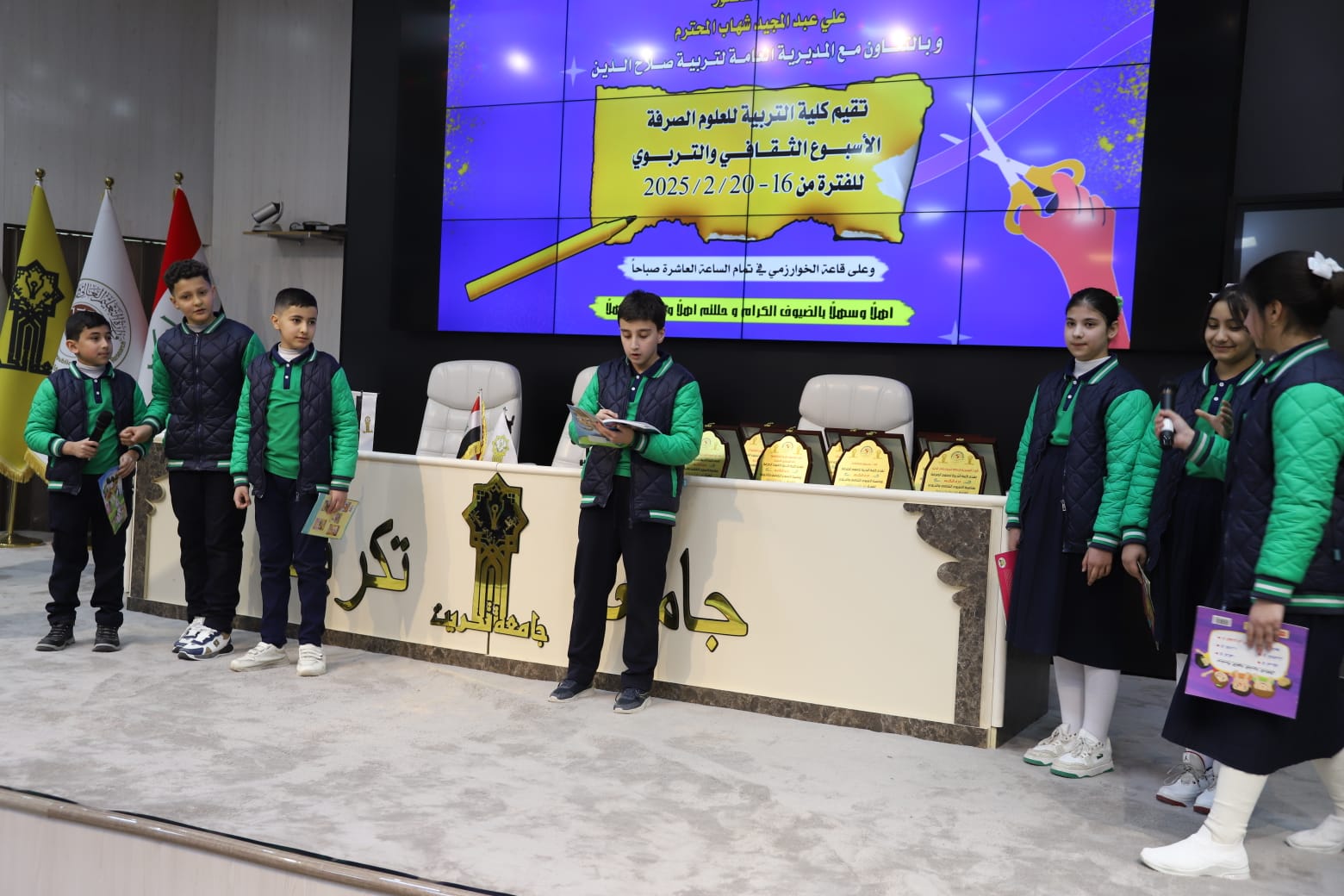 برعاية الاستاذ الدكتور وعد محمود رؤوف رئيس جامعة تكريت وبإشراف الاستاذ الدكتور علي عبدالمجيد شهاب عميد كلية التربية للعلوم الصرفة وبالتعاون مع مديرية تربية صلاح الدين وبحضور مساعدي رئيس الجامعة للشؤون العلمية والادارية.