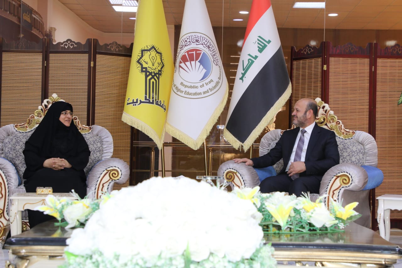 استقبل الاستاذ الدكتور وعد محمود رؤوف رئيس جامعة تكريت في مكتبه الاستاذ الدكتورة زينب عبد الحسين الملا السلطاني رئيس جامعة الزهراء عليها السلام وبعد الترحيب بالاستاذة الضيف تناول الطرفان المواضيع ذات الاهتمام المشترك بين الجامعتين واستمعت الضيف الى شرح عن واقع جامعة تكريت والتطور العلمي والاكاديمي والعمراني فيها، وشملت الزيارة جولة في اروقة الجامعة ضمت كلية طب الاسنان ومختبراتها والاطلاع على المستشفى التعليمي الخاص بها تم بعدها زيارة كلية الصيدلة ومختبراتها ثم الانتقال الى مطبعة الجامعة والاطلاع على عملها وزيارة الملعب الخاص بالجامعة وفي ختام اللقاء والزيارة تم توقيع مذكرة تعاون علمي مشترك بين الجامعتين وتبادل دروع الجامعتين. يذكر ان هذه الزيارة تأتي في اطار سعي الجامعة المستمر لفتح افاق التعاون مع الجامعات والمؤسسات العلمية والاكاديمية والمؤسسات الحكومية بما يخدم المصلحة العامة.