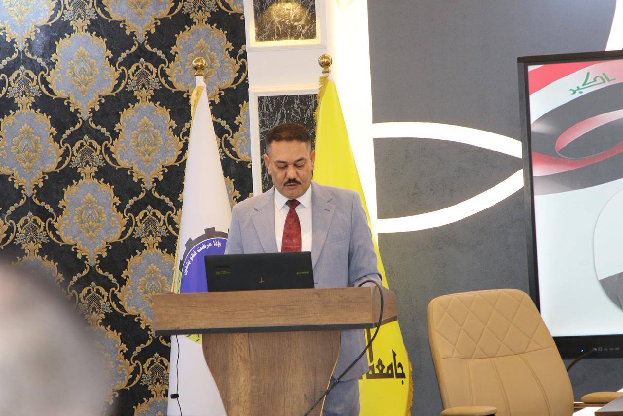 مساعد رئيس الجامعة للشؤون العلمية يحضر ندوة عن استراتيجية الأمن الوطني العراقي في كلية الصيدلة