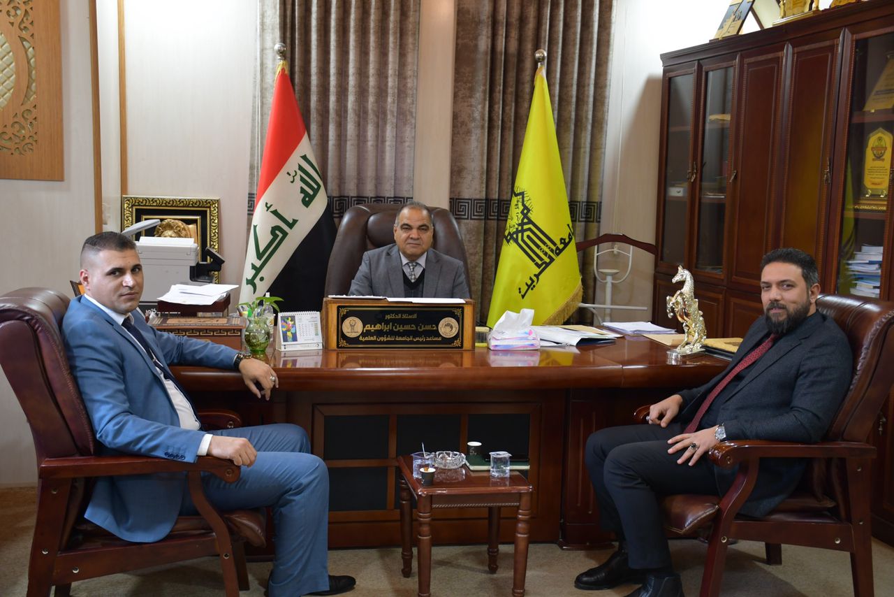 في اطار التعاون المشترك بين جامعة تكريت والمؤسسات الحكومية والعلمية ومؤسسات المجتمع استقبل الاستاذ الدكتور حسن حسين ابراهيم مساعد رئيس الجامعة للشؤون العلمية في مكتبه وفد العتبة الحسينية المكون من الدكتور حسن علي الوزني مسؤول ضمان الجودة في العتبة يرافقه الاستاذ احمد عباس الموسوي مسؤول العلاقات العلمية للعتبة الحسينية والذي يزور الجامعة لتقديم الدعوة للمشاركة بفعاليات المؤتمر الثاني بالتنمية والتطوير نرتقي والموسوم (فاعلية الجودة في تطوير الاداء المؤسسي) والذي ستعقد فعالياته برعاية العتبة الحسينية المقدسة وجامعة وارث الانبياء وكلية العلوم الاسلامية وقسم تطوير الموارد البشرية التابع للعتبة الحسينية. وسيتناول عدة محاور هي الدراسات الاسلامية والدراسات التنموية والدراسات الادارية والدراسات الاقتصادية بالاضافة الى الدراسات السياسية والقانونية.