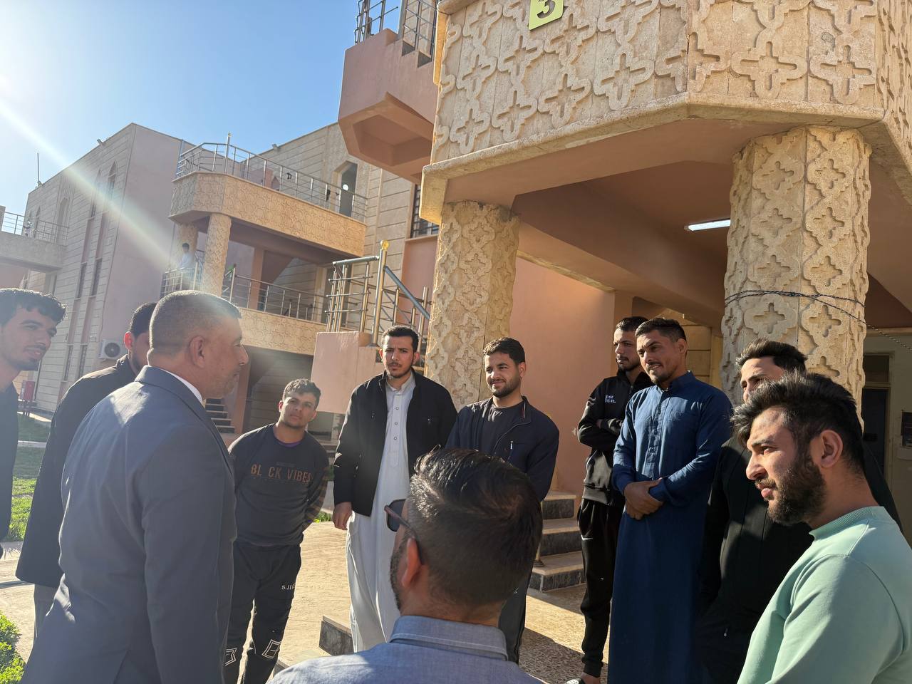 وتهدف الزيارة الى الوقوف على احتياجات الطلبة ومعالجة المعوقات التي قد تواجههم بما يسهم في توفير بيئة سكنية ملائمة تعينهم على مواصلة مسيرتهم الدراسية بالشكل الامثل