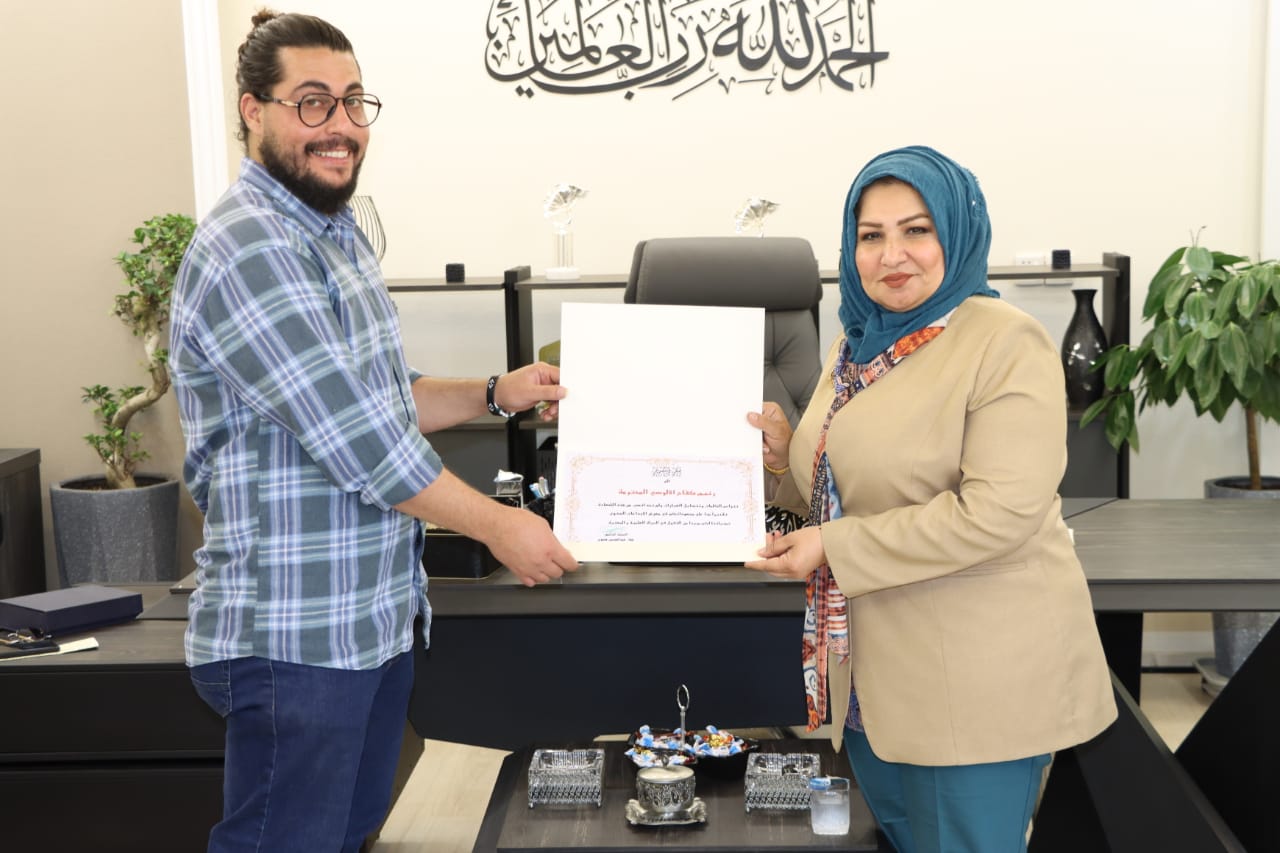 تنفيذاً لتوجيهات الاستاذ الدكتور وعد محمود رؤوف رئيس جامعة تكريت وفي اطار جولاته ومتابعاته المستمرة في كليات وأروقة الجامع افتتح الاستاذ الدكتور حسن حسين ابراهيم مساعد رئيس الجامعة للشؤون العلمية في كلية التربية للبنات معرض الابداعات النسوية الذي تضمن العديد من الأعمال اليدوية والنتاجات النسوية، وكان في استقباله السيدة عميد الكلية الاستاذ الدكتورة نجلاء عبدالحسين واجرى برفقتها على هامش الافتتاح جولة في اقسام وقاعات الكلية للاطلاع على واقعها وسير العمل والوقوف على اهم المشاكل التي تواجه الكلية لايجاد الحلول المناسبة لها. وفي ختام الزيارة اثنى مساعد رئيس الجامعة على الجهود المبذولة من قبل عمادة الكلية متمنيا الموفقية للجميع.