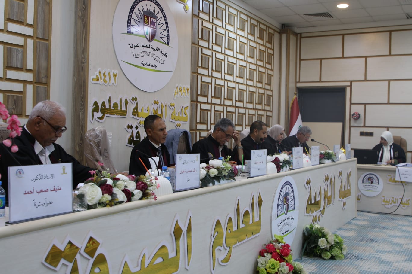(دور جامعة تكريت في تنمية الوعي الفكري والأمني لدى طلبتها وسبل تقويمه) فيما كانت المناقشة الثالثة لطالب الماجستير صالح احمد داشان سایر من كلية التربية للعلوم الانسانية