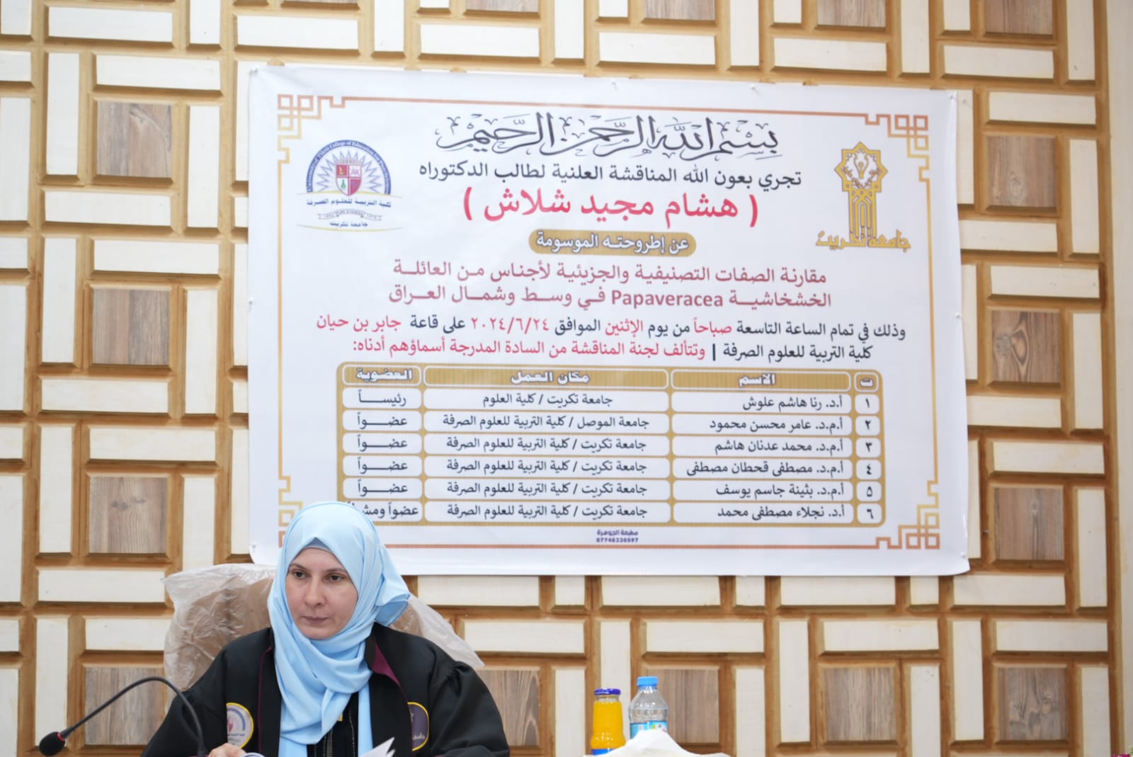 تنفيذا لتوجيهات الاستاذ الدكتور وعد محمود رؤوف رئيس جامعة تكريت وضمن الجولات التفقدية والمتابعة المستمرة لكليات واقسام ومفاصل الجامعة حضر الاستاذ المساعد الدكتور فؤاد فرحان حسين مساعد رئيس الجامعة للشؤون الادارية مناقشة اطروحة دكتوراه للطالب (هشام مجید شلاش) عن إطروحته الموسومة (مقارنة الصفات التصنيفية والجزيئية لأجناس من العائلة