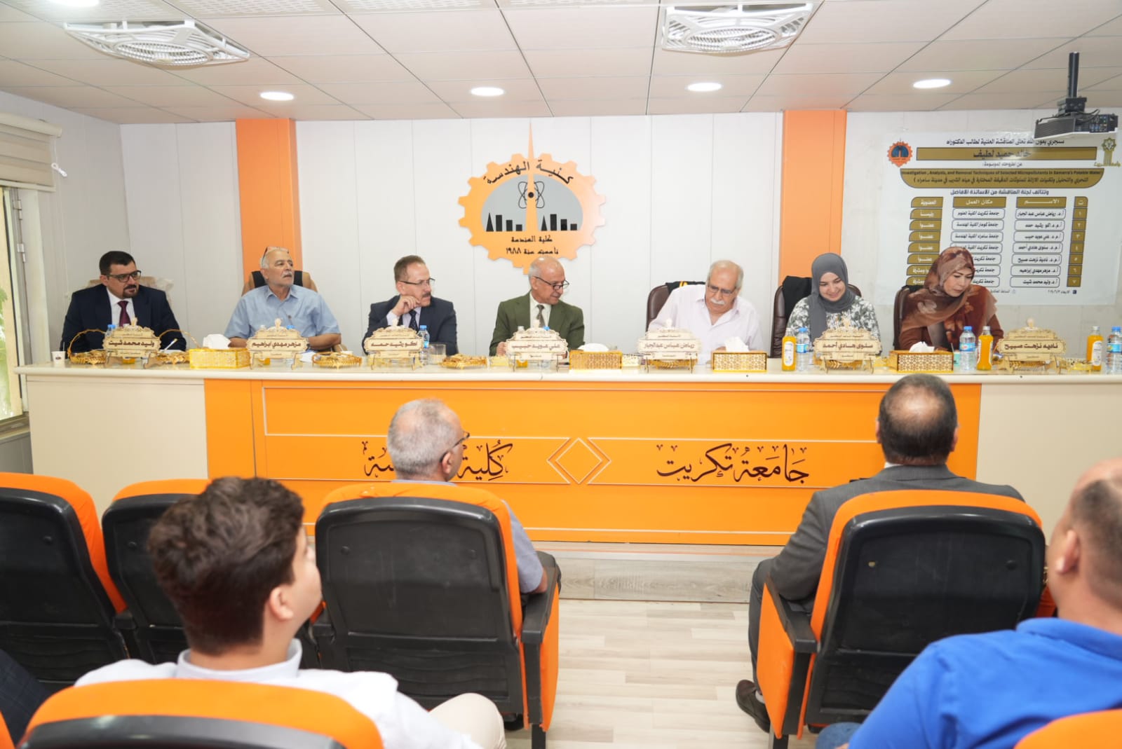 تنفيذا لتوجيهات الاستاذ الدكتور وعد محمود رؤوف رئيس جامعة تكريت وضمن الجولات التفقدية والمتابعة المستمرة لكليات واقسام ومفاصل الجامعة حضر الاستاذ الدكتور حسن حسين ابراهيم مساعد رئيس الجامعة للشؤون العلمية والاستاذ الدكتور فؤاد فرحان حسين مساعد رئيس الجامعة للشؤون الادارية مناقشة رسالة ماجستير في كلية التربية للعلوم الانسانية للطالب محمود عبدالله محيميد من قسم العلوم التربوية والنفسية والموسومة (اثر استراتيجية المحاكمة العقلية في تحصيل طلاب الصف الخامس الادبي في مادة الفلسفة وعلم النفس وتنمية قيمهم الاخلاقية) حضر المساعد العلمي بعدها مناقشة اطروحة دكتوراه للطالب خالد حميد لطيف من كلية الهندسة