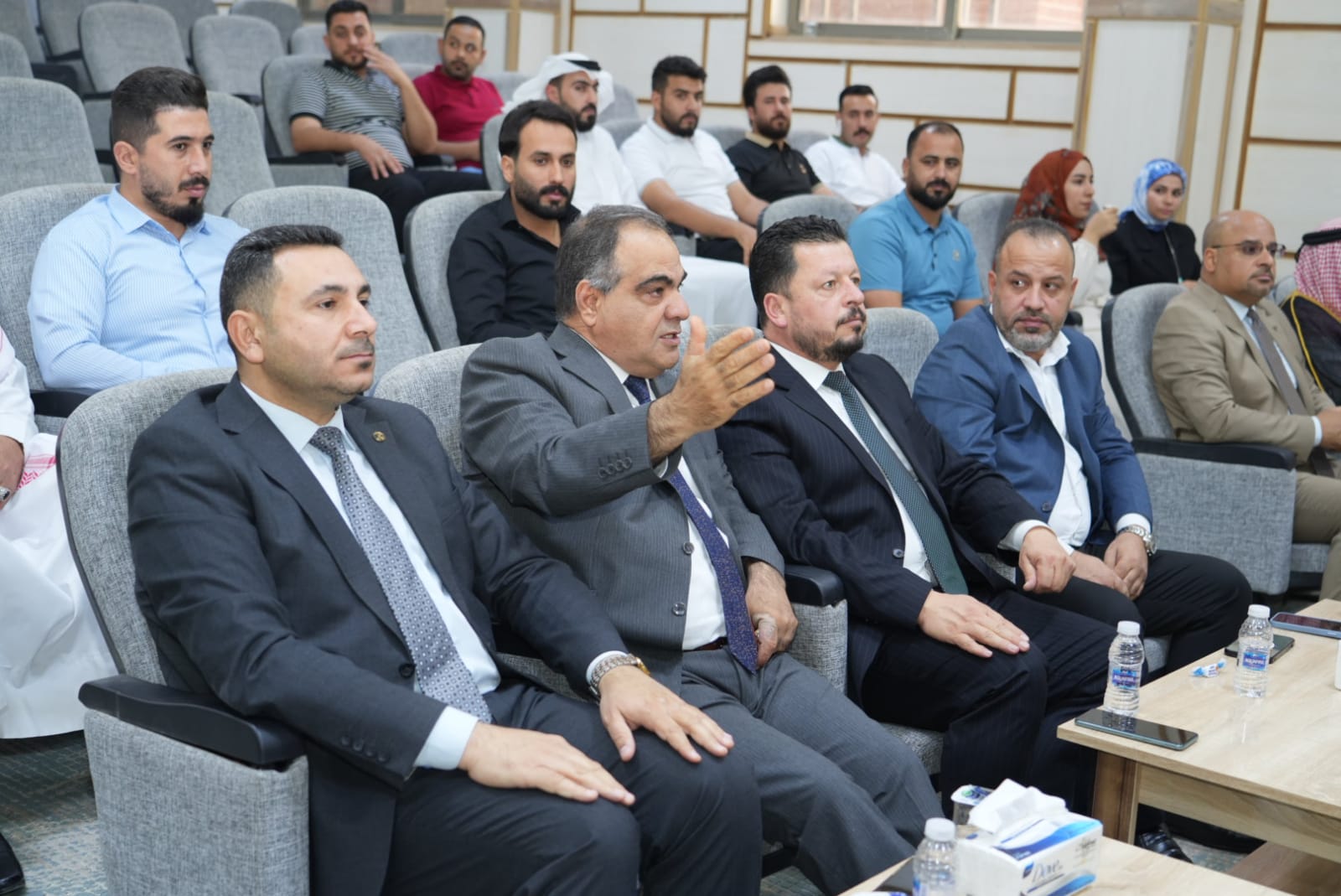 مساعدا رئيس الجامعة للشؤون العلمية والإدارية يحضرا مناقشتين علميتين في كلية التربية للعلوم الإنسانية وكلية الهندسة.