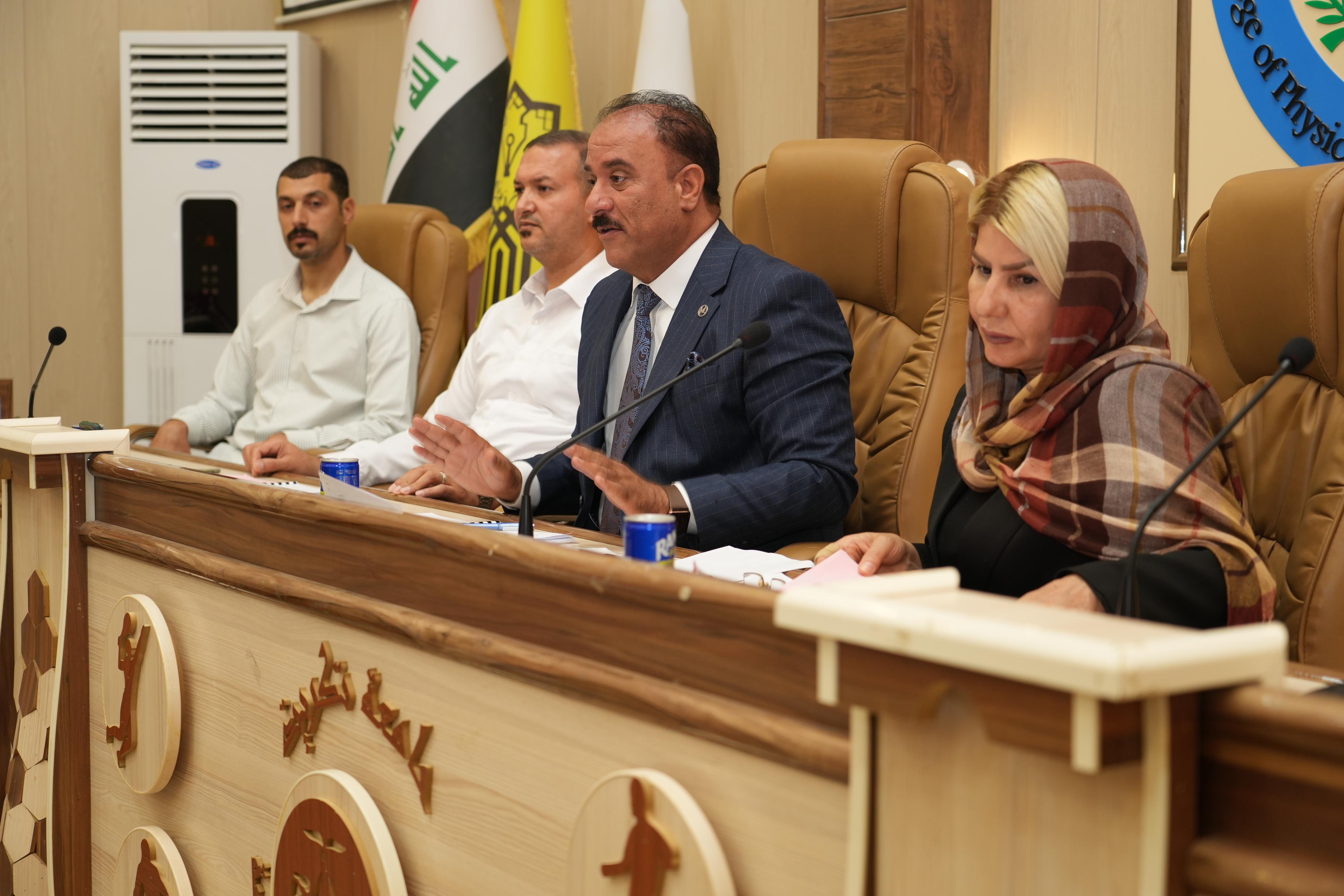 ضمن جولاته التفقدية المستمرة لكليات ومفاصل الجامعة حضر الاستاذ الدكتور وعد محمود رؤوف رئيس جامعة تكريت فعاليات المؤتمر العلمي لمناقشة بحوث تخرج الطلبة في كلية التربية البدنية وعلوم الرياضة حيث بارك للطلبة واثنى على جهود الاساتذة المشرفين والمناقشين اجرى بعدها جولة شملت عدد من مرافق الكلية للاطلاع على واقعها والوقوف على احتياجاتها انتقل رئيس الجامعة بعدها الى كلية الزراعة حيث شارك في اجتماع مجلس كلية الزراعة وابدى بعض التوجيهات الخاصة للنهوض بواقع سير العمل فيها ثم اجرى جولة للاطلاع على مفاصل الكلية واستمع الى شرح مفصل عن واقعها وماتحتاجه انتقل رئيس الجامعة بعدها الى كلية القانون لمتابعة سير العمل فيها بصفته عميد من موقع ادنى. وفي ختام الزيارة اشاد رئيس الجامعة بجهود عمادات الكليات في انجاز المهام الموكلة لهم واهتمامهم للارتقاء الدائم بالمستوى العلمي والاكاديمي فيها وبما يحقق الاهداف المنشودة لرئاسة الجامعة.