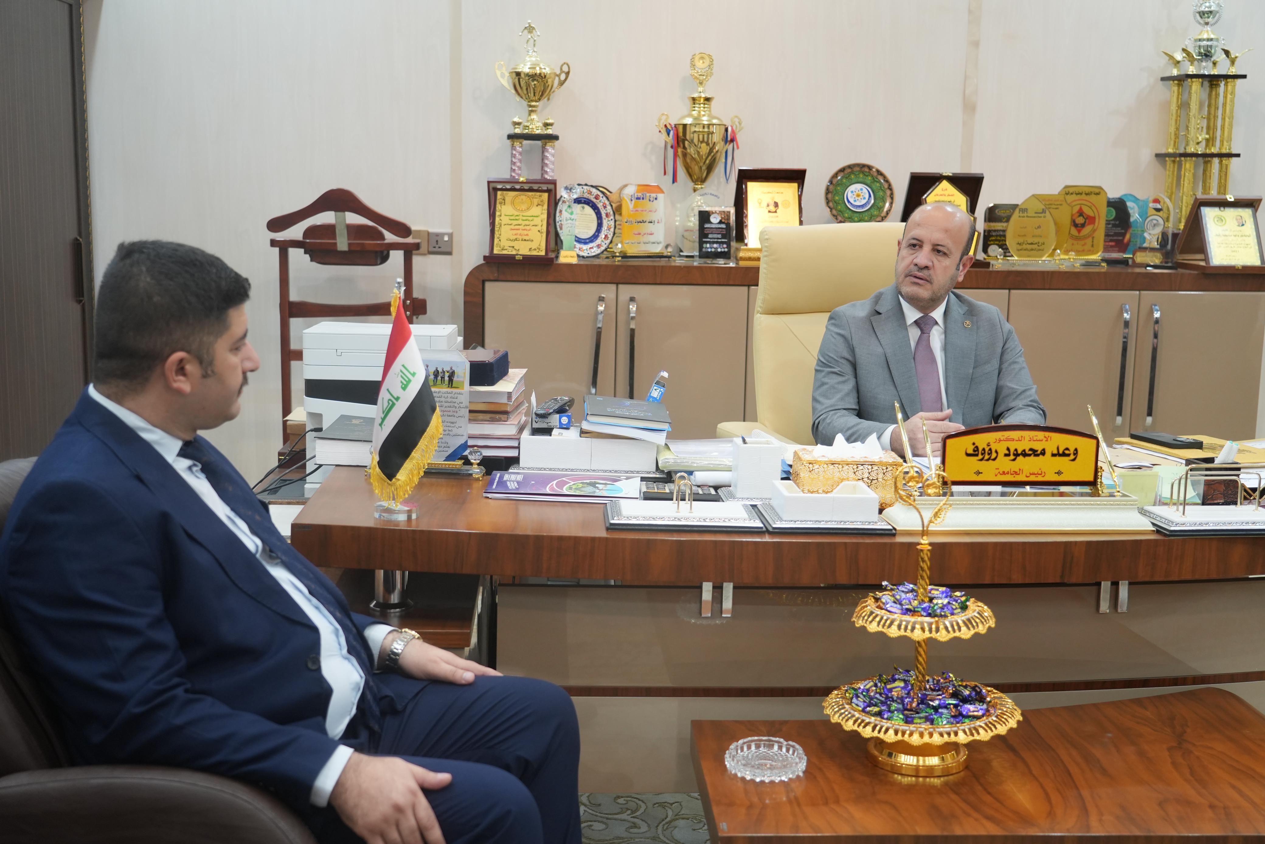 استقبل الاستاذ الدكتور وعد محمود رؤوف في مكتبه السيد كاوه محمد رشيد مستشار محافظ صلاح الدين لشؤون الامنية والعسكرية