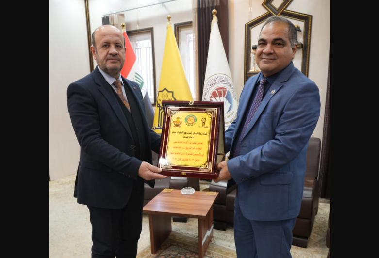 استقبل الاستاذ الدكتور وعد محمود رؤوف رئيس جامعة تكريت في مكتبه الاستاذ الدكتور حسن حسين ابراهيم مساعد رئيس الجامعة للشؤون العلمية والاستاذ الدكتور عماد احمد حميد عميد كلية التربية للعلوم الانسانية حيث تسلم من المساعد العلمي درع مؤتمر مركز صلاح الدين الايوبي للدراسات التاريخية والحضارية والموسوم تعاطي المخدرات واثارها على المجتمع عبر التاريخ ودور الجامعات في تشخيص الظاهرة وسبل الوقاية منها كما تسلم من عميد كلية التربية للعلوم الانسانية درع مؤتمرها الثالث عشر والموسوم العلوم الانسانية والبحث العلمي منهاج الحداثة ودراسات المستقبل من جانبه بارك السيد رئيس الجامعة نجاح المؤتمرين متمنيآ لهم دوام النجاح والموفقية خدمة لجامعتنا العزيزة