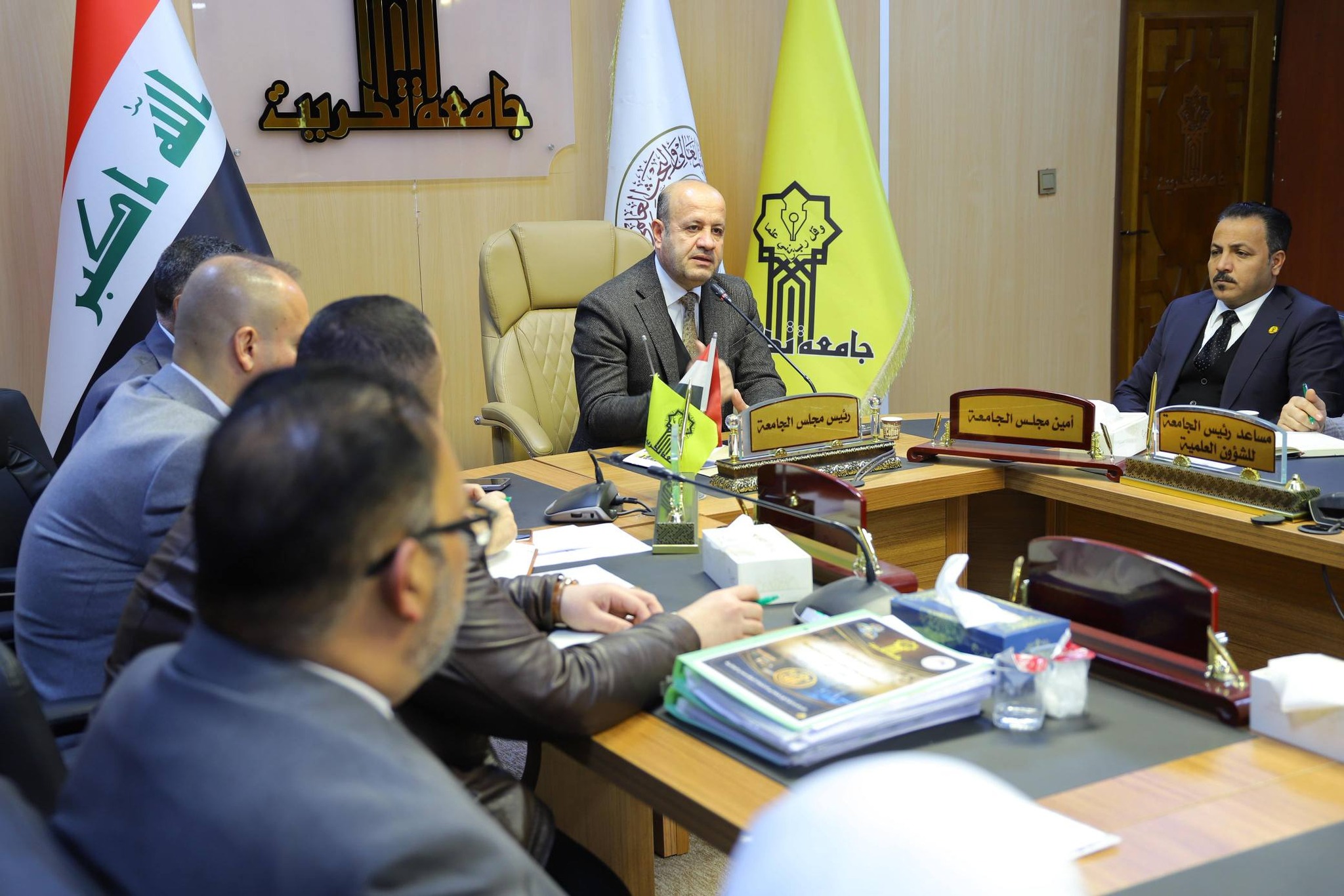 وجرى خلال الاجتماع مناقشة واقع الاعتماد المؤسسي في الجامعة، ومتابعة متطلبات ومعايير الاعتماد المعتمدة من قبل وزارة التعليم العالي والبحث العلمي، فضلاً عن استعراض مراحل التقدم المحرز في هذا الملف المهم، وآليات تعزيز الأداء المؤسسي والحوكمة الأكاديمية بما ينسجم مع معايير الجودة الشاملة.