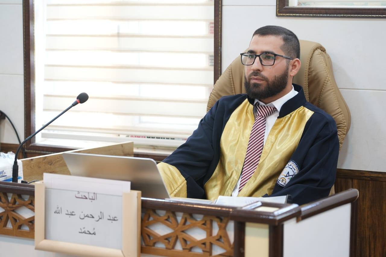 أثنى السيد رئيس الجامعة خلال كلمته على الجهود المبذولة من قبل الباحث والمشرف ولجنة المناقشة، مؤكدًا حرص رئاسة الجامعة على دعم طلبة الدراسات العليا وتوفير البيئة العلمية الملائمة لهم، لما لذلك من دور فاعل في تطوير البحث العلمي وتعزيز مكانة الجامعة أكاديمياً محلياً ودولياً.