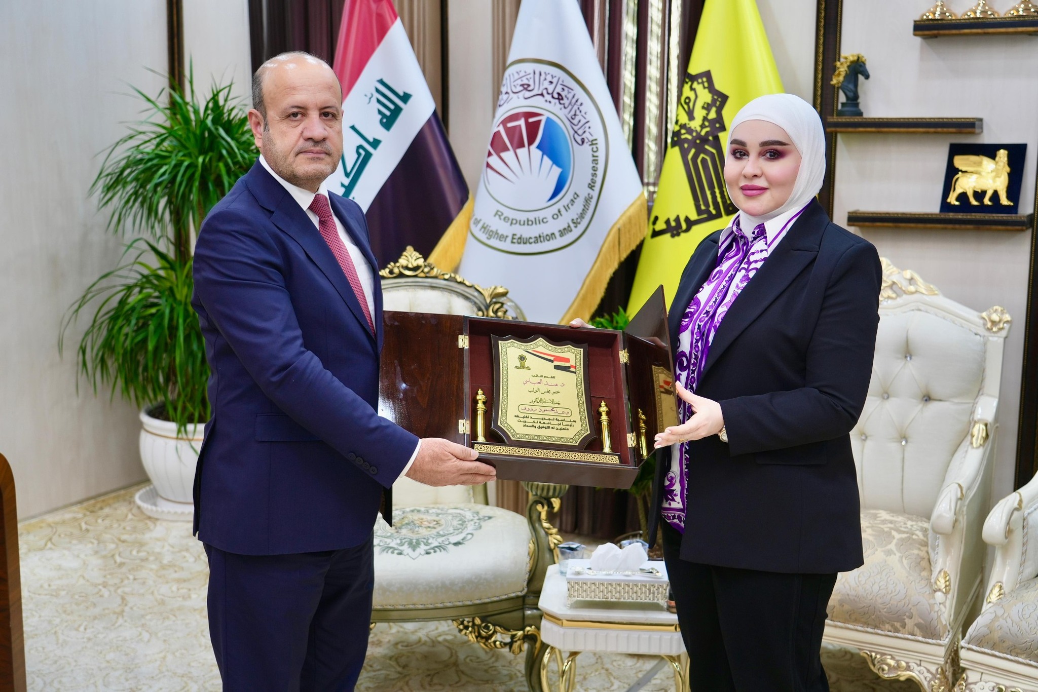 وفي ختام الزيارة، قدمت النائب الدكتورة هند العباسي درعاً تقديرياً إلى الأستاذ الدكتور وعد محمود رؤوف، تعبيراً عن تقديرها لجهوده في قيادة الجامعة ودوره الفاعل في النهوض بها على المستوى الأكاديمي والإداري.