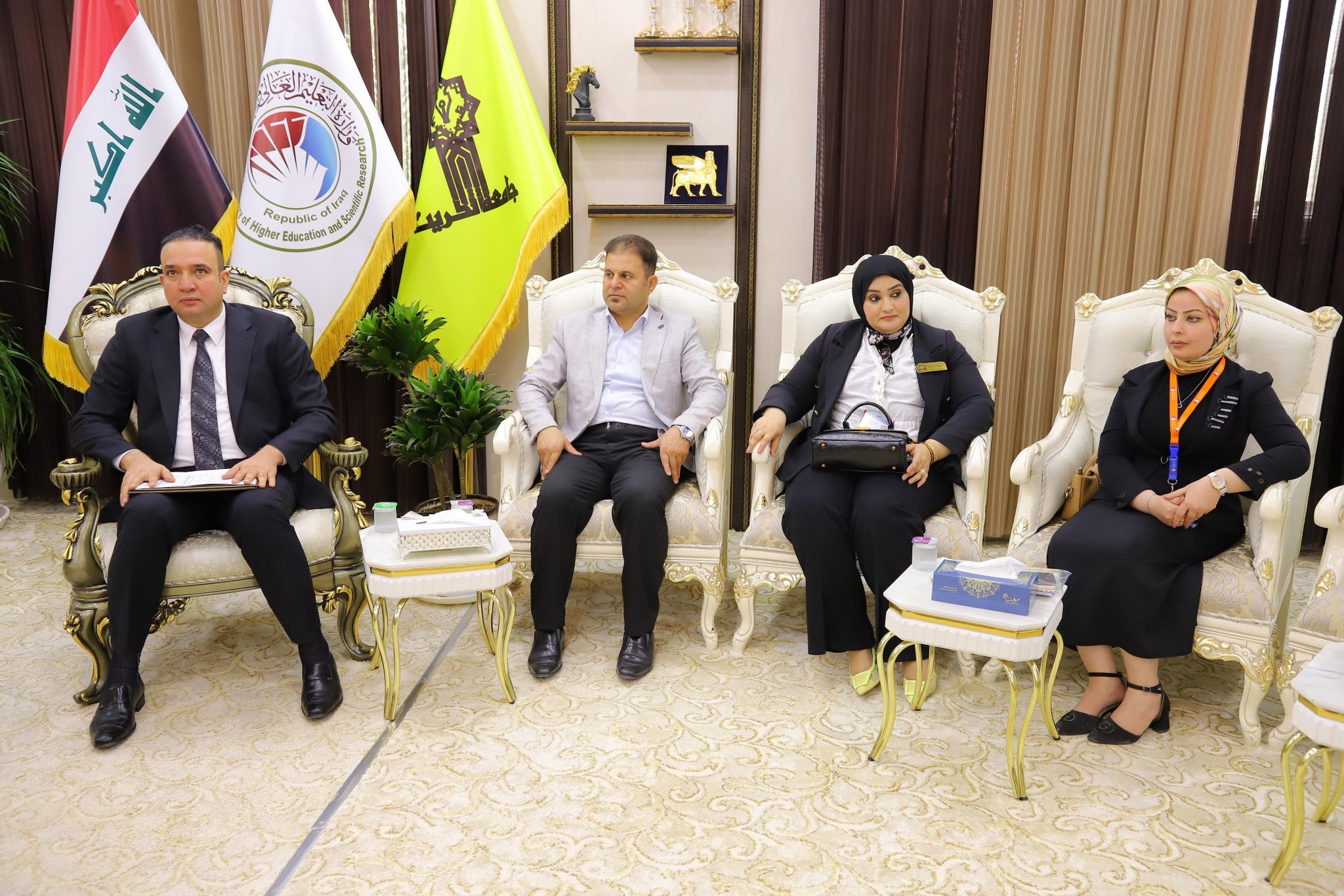 استقبل رئيس جامعة تكريت الأستاذ الدكتور وعد محمود رؤوف وفداً يمثل مصرفي بغداد وآشور الأهليين، لبحث سبل تعزيز التعاون المشترك بين الجامعة والمصارف الأهلية وفتح آفاق جديدة للتنسيق في مجالات التدريب والخدمات المصرفية.