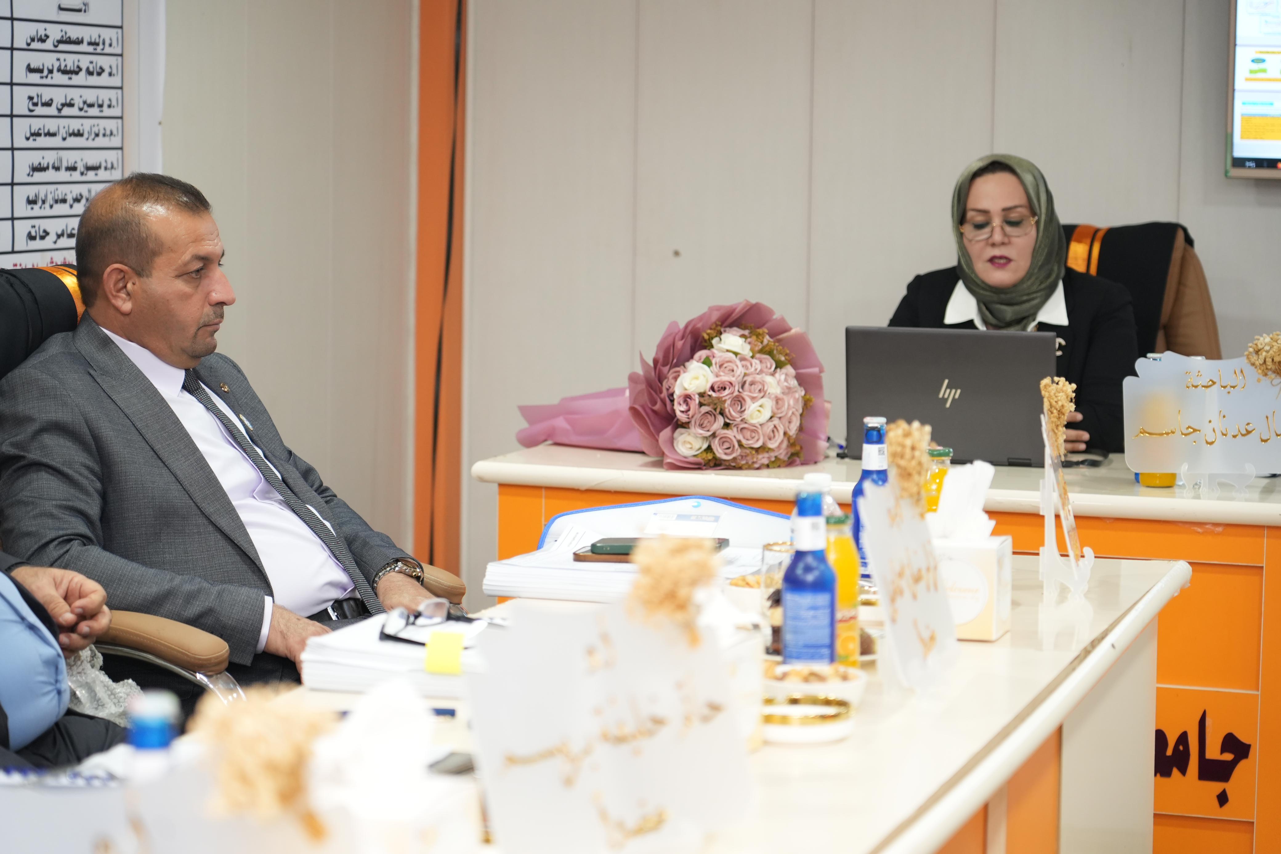 حيث عبر السيد رئيس الجامعة عن سروره بحضور مثل هذه المناقشات مشددا على ألاهتمام بالجودة والرصانة العلمية فيها واثنى في الوقت ذاته على دقة الملاحظات العلمية التي طرحتها لجنتي المناقشتين وصوابها مباركاً الجهود المبذولة من قبل الباحثتين ولجان المناقشات.