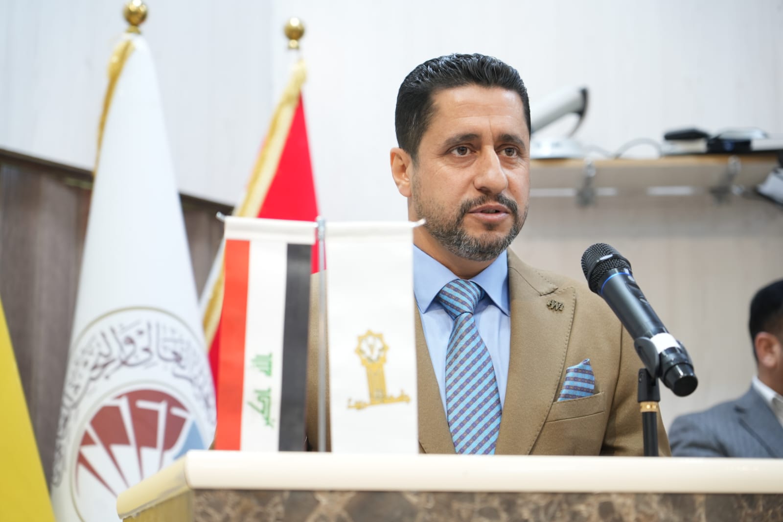 ثم القى ممثل الطلبة كلمة الطلبة الخريجيين والتي اثنى فيها على جهود الكلية والجامعة والاساتذة وماقدموه من الدعم الكامل والذي بدوره أدى الى خلق جيل مثقف وقادرٍ على حمل الرسالة وتحقيق غايتها في خدمة المجتمع.