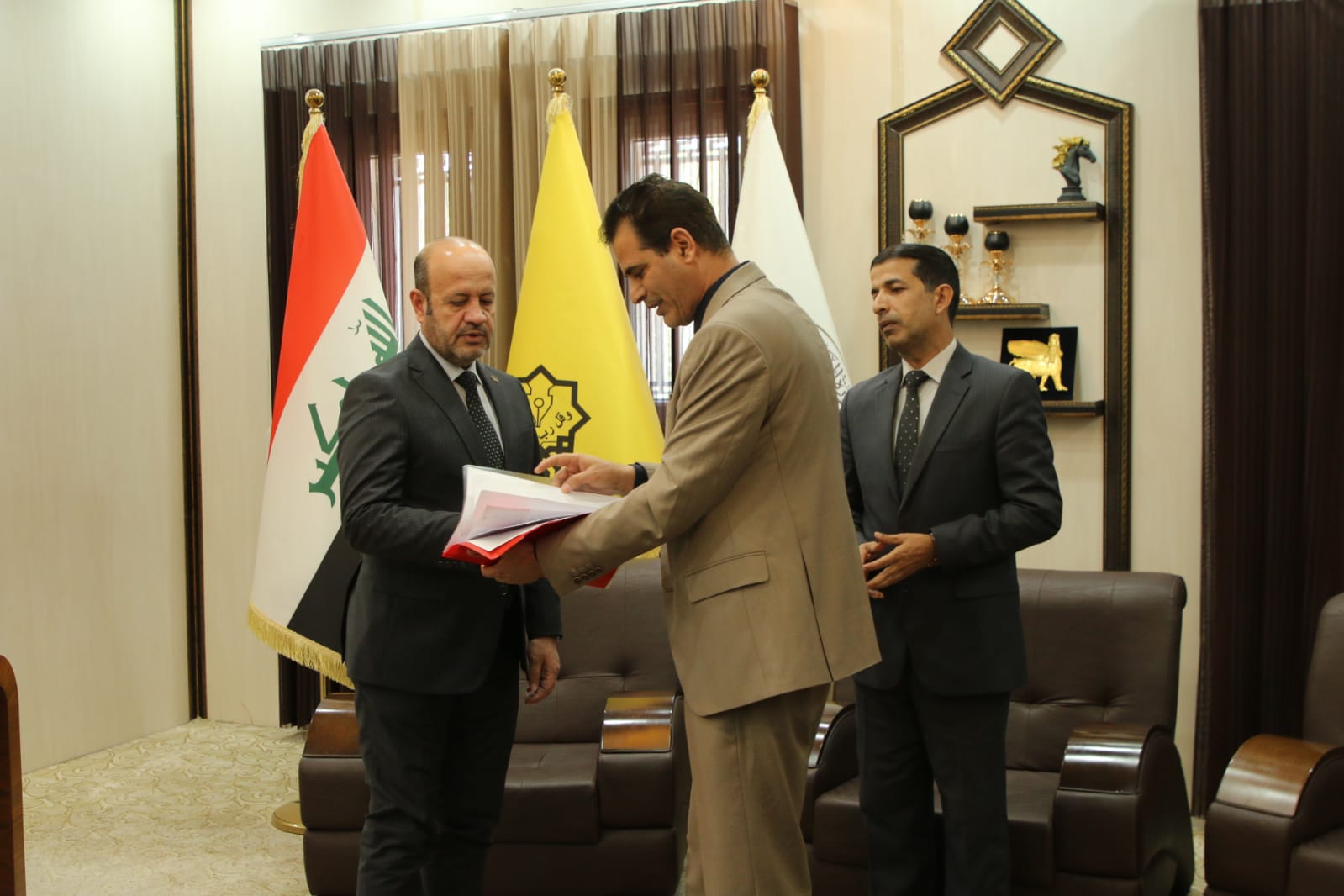 استقبل الاستاذ الدكتور وعد محمود رؤوف رئيس جامعة تكريت في مكتبة اليوم الاربعاء الاستاذ الدكتور انور فارس عبد عميد كلية العلوم الاسلامية والاستاذ الدكتور كفاح صابر رشيد رئيس المجلس الوطني للإعتماد البرامجي لكليات العلوم الاسلامية بمناسبة اكمال التقديم الاعتمادي لستة اقسام علمية .