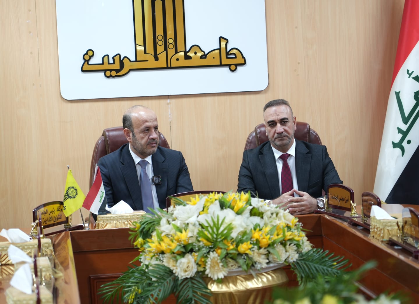 من جانبه أعرب رئيس جامعة الإمام جعفر الصادق عن شكره لرئيس جامعة تكريت على حفاوة الاستقبال والترحيب ، مشيداً بالكفاءات العلمية الموجودة فيها ، موضحاً اهمية التعاون بين المؤسسات التعليمية من أجل الاستفادة من الخبرات والتجارب ، الامر الذي يسهم في تطوير المسيرة التعليمية وخدمة المجتمع .