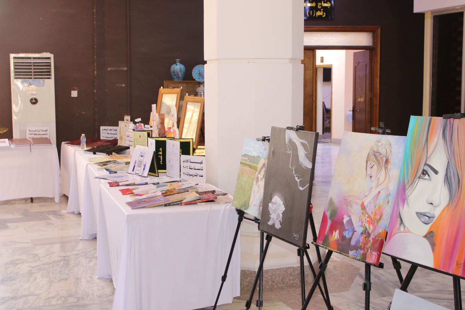 وفي ختام فعاليات المهرجان افتتح السيد رئيس الجامعة معرضا للنتاجات التي شملت مؤلفات وبراءات اختراع ورسومات متنوعة عن المرأة وواقعها من ابداعات المرأة في الجامعة.