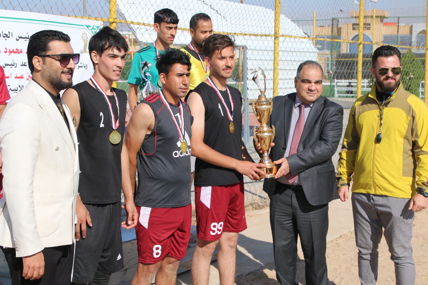 بتوجيه من الاستاذ الدكتور وعد محمود رؤوف رئيس جامعة تكريت وبحضور الاستاذ الدكتور حسن حسين ابراهيم مساعد رئيس جامعة تكريت للشؤون العلمية اختتمت في كلية التربية البدنية وعلوم الرياضة بطولة كرة الطائرة الشاطئية التي اقامها قسم النشاطات الطلابية في رئاسة الجامعة على ملاعب الكلية