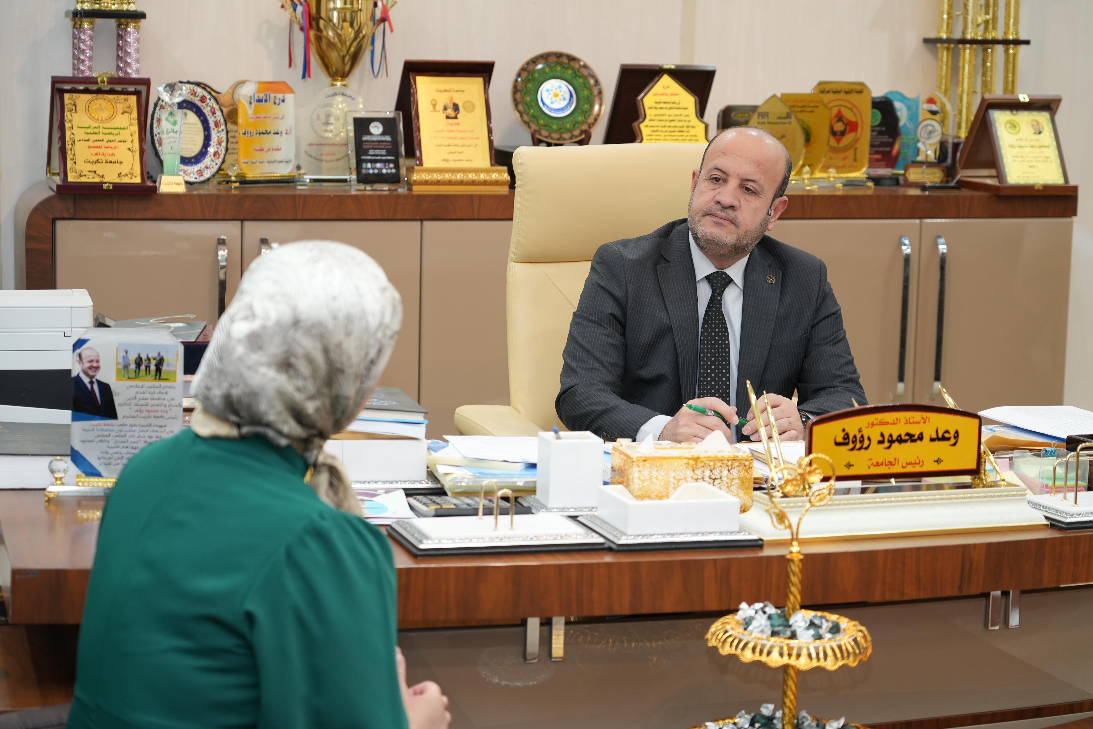 في اطار المتابعة الدائمة والمستمرة لاحتياجات منتسبي وطلبة الجامعة والمواطنين التقى الاستاذ الدكتور وعد محمود رؤوف رئيس جامعة تكريت اليوم الثلاثاء الموافق ١/ ١٠/ ٢٠٢٤ في مكتبه عدداً من الطلبة ومنتسبي الجامعة والمواطنين