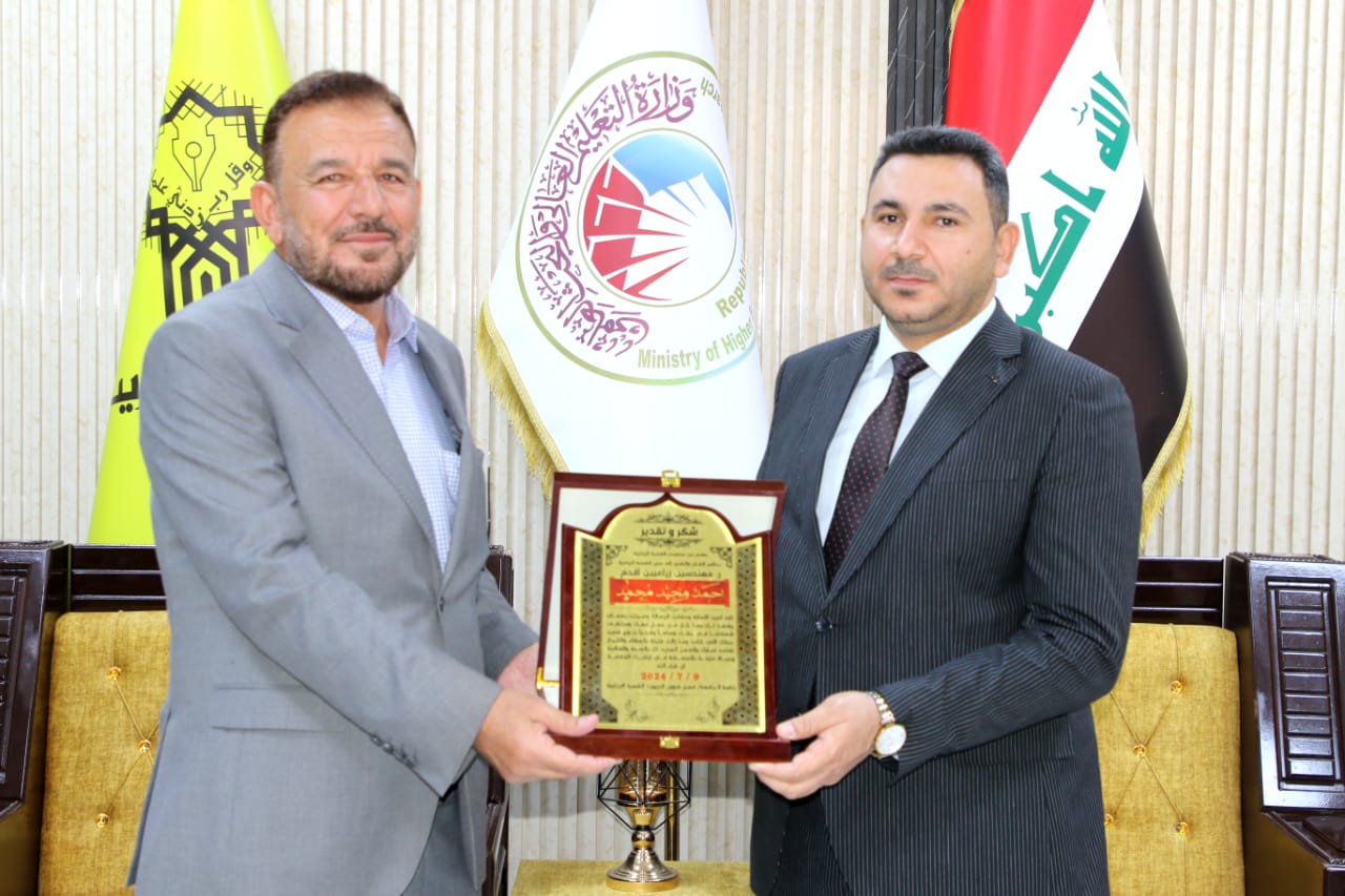 وفي الختام قدّم المساعد الاداري درع الشكر والتقدير الى السيد احمد مجيد ،متمنيا له التوفيق والسداد في حياته الجديدة