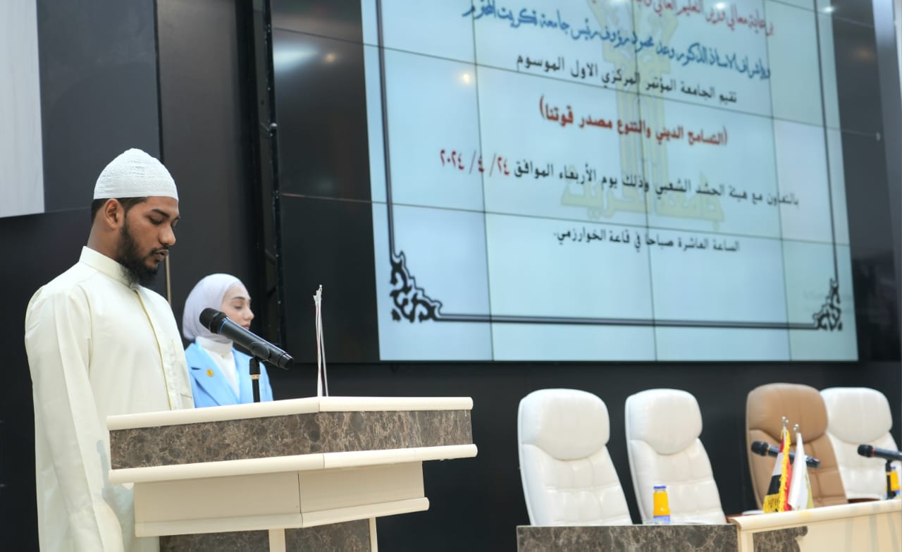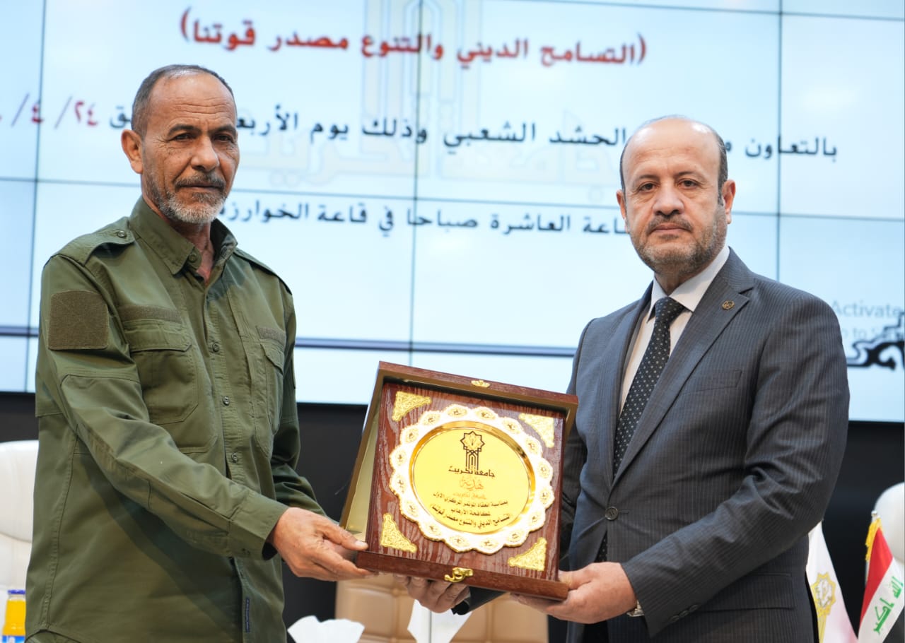 برعاية معالي وزير التعليم العالي والبحث العلمي الدكتور نعيم العبودي وبإشراف الاستاذ الدكتور وعد محمود رؤوف رئيس جامعة تكريت وبالتعاون مع هيئة الحشد الشعبي وبحضور الشيخ محمد حسن عطية نائب رئيس مجلس محافظة صلاح الدين و مساعدي رئيس الجامعة للشؤون العلمية و الاداري وعددٍ من اعضاء مجلس الجامعة وشخصيات دينية وأمنية وثقافية وإجتماعية واكاديمية اقامت رئاسة جامعة تكريت اليوم الاربعاء الموافق 24/4/2024 وعلى قاعة الخوارزمي مؤتمرها العلمي المركزي الاول الموسوم (التسامح الديني والتنوع مصدر قوتنا) .