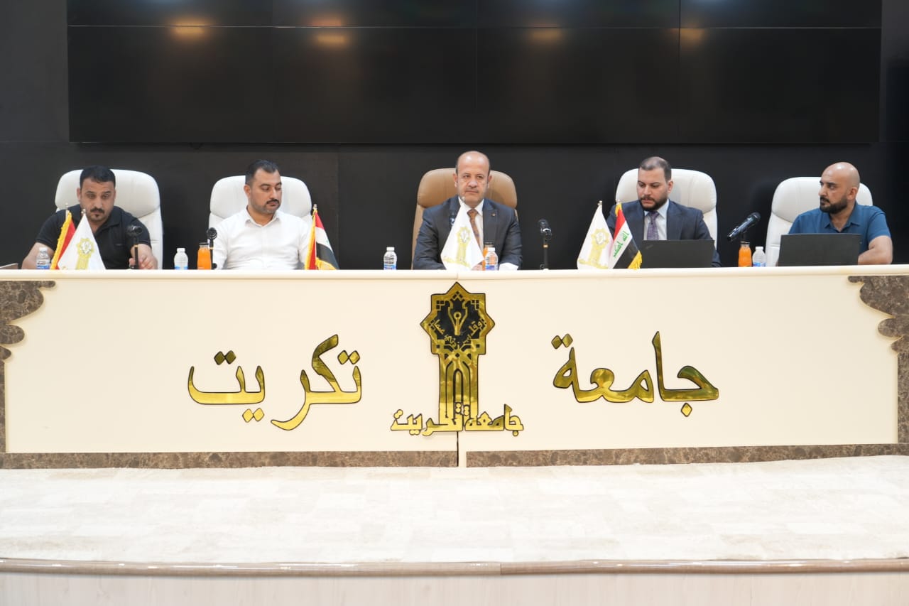 استناداً الى توجهيات رئاسة مجلس الوزراء ووزارة التعليم العالي والبحث العلمي ووزارة المالية وبحضور رئيس جامعة تكريت الاستاذ الدكتور وعد محمود رؤوف والاستاذ المساعد الدكتور فؤاد فرحان حسين مساعد رئيس الجامعة للشؤون الادارية وعددٍ من عمداء الكليات مسؤولي شعب الحسابات والتدقيق ، اقامت الجامعة وعلى قاعة الخوارزمي اليوم الاثنين الموافق 29/4/2024 ندوة للتعريف بتطبيق التحصيل الالكتروني تطبيق نظام المدن الذكية وكيف تدار منصة جابي وكيفية الدخول الى هذه المنصة ومتابعة استحصال المبالغ الواردة الالكترونياً.