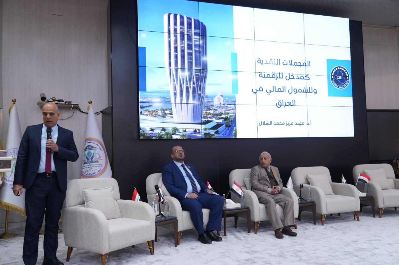 وأوضح أن الرقمنة تمثل ضرورة استراتيجية لمكافحة الفساد، وتعزيز الشفافية، وتحقيق العدالة في الوصول إلى الخدمات المالية، مثمّنًا جهود البنك المركزي العراقي في نشر الثقافة المالية وتطوير أنظمة الدفع الإلكتروني. كما دعا إلى تبنّي استراتيجية وطنية موحدة للتكامل الرقمي، وتعزيز الشراكة بين الجامعات والمؤسسات المصرفية، ودعم الابتكار المالي، إلى جانب توسيع نطاق الشمول المالي، وتطوير منظومات الأمن السيبراني، ونشر الوعي المالي في المجتمع.