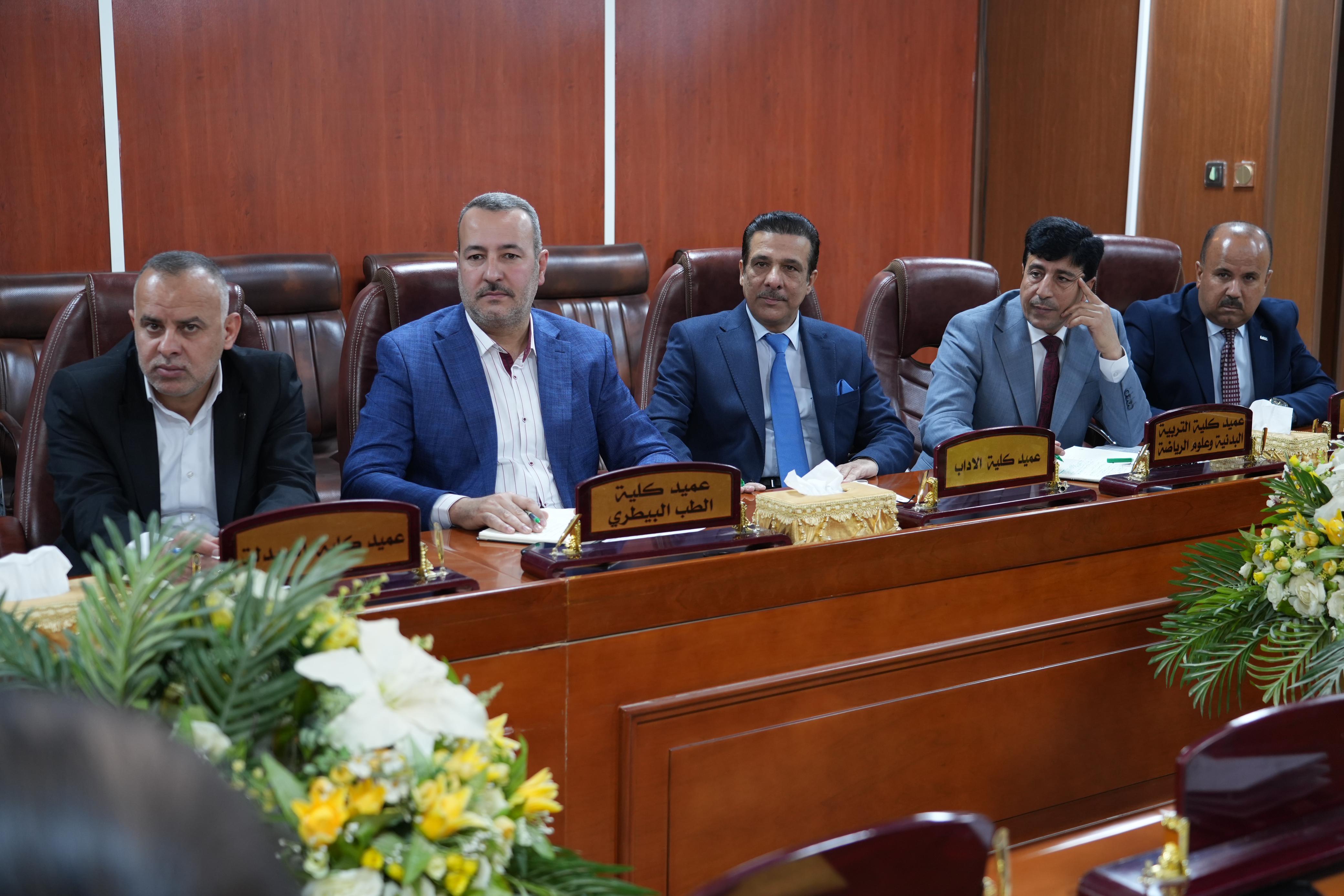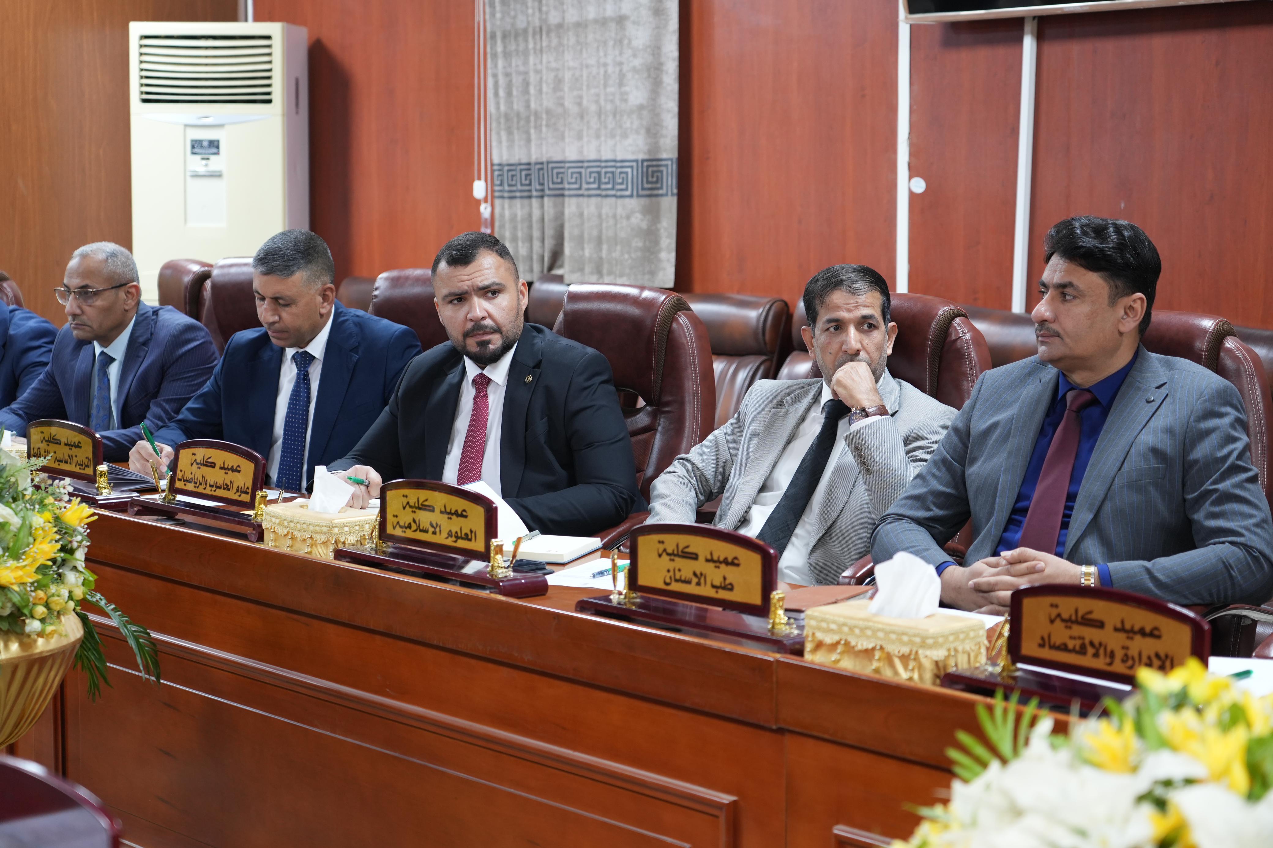 ترأس الاستاذ الدكتور وعد محمود رؤوف رئيس جامعة تكريت الجلسة التاسعة لمجلس الجامعة وبحضور السادة اعضاء المجلس اليوم الثلاثاء الموافق ١٦/ ٤/ ٢٠٢٤ افتتحت الجلسة بعد ترحيب السيد رئيس الجامعة بالسادة الحاضرين بأعطاء بعض التوجيهات الخاصة بسير العمل ناقش المجلس بعدها الفقرات المدرجة على جدول أعماله والتي كان من اهمها اعفاء اجور دراسية/ دراسات اولية/ موازي ودراسة مسائية وتخفيض اجور دراسية لطلبة دراسات عليا وترقيات علمية وتوصيات المؤتمر الوطني الاول للتعليم الاخضر بالاضافة الى استحداث دراسة مسائية/ قسم التفسير وعلوم القرآن وتصحيح اجازة دراسية وتمويل وتشغيل محطة تربية الاسماك وتمويل وتشغيل محطة ابحاث ابحاث بيجي الزراعية واحلال اعضاء في المكاتب الاستشارية كذلك تمت مناقشة العديد من الفقرات الاخرى المدرجة على جدول اعمال المجلس.