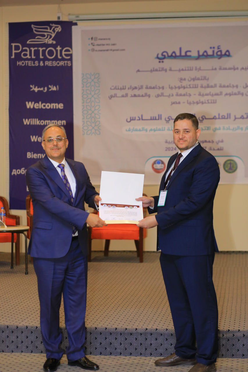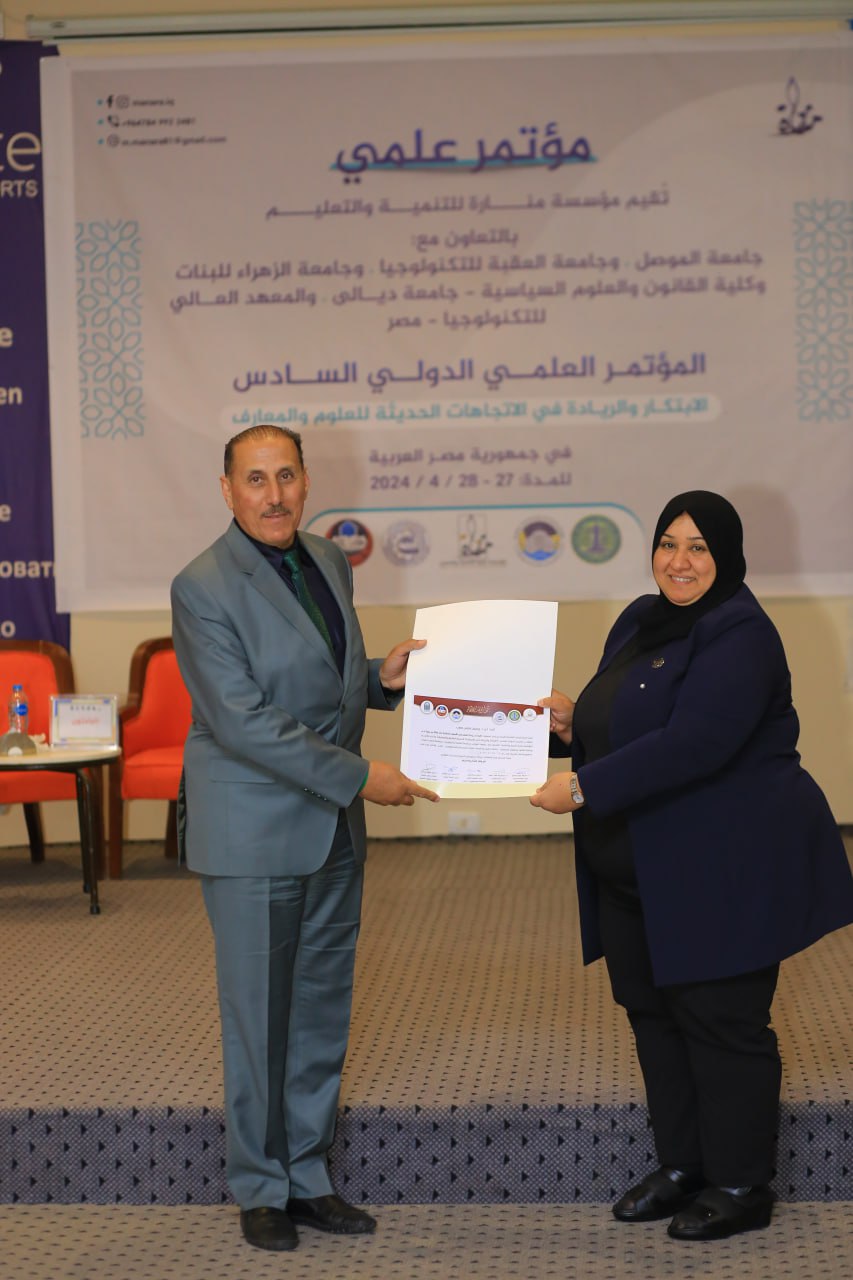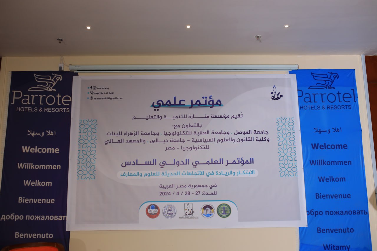 تنفيذا لتوجيهات الاستاذ الدكتور وعد محمود رؤوف رئيس جامعة تكريت شاركت جامعة تكريت ممثلة بعدد من تدريسييها في فعاليات المؤتمر الدولي السادس الذي عقد في جمهورية مصر العربية تحت شعار (الابتكار والريادة في الاتجاهات الحديثة للعلوم والمعارف) الذي اقامته مؤسسة منارة للتنمية والتعليم بالتعاون مع جامعة الموصل- العراق وجامعة العقبة للتكنلوجيا- الأردن وجامعة الزهراء للبنات- العراق وكلية القانون والعلوم السياسية جامعة ديالى- العراق والمعهد العالي للتكنلوجيا- مصر للفترة من 26-27 /4 /2024