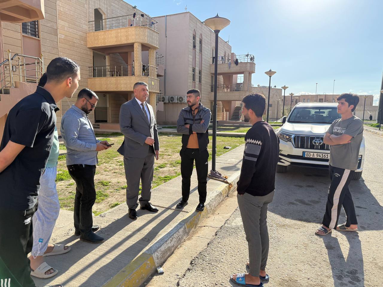 وتهدف الزيارة الى الوقوف على احتياجات الطلبة ومعالجة المعوقات التي قد تواجههم بما يسهم في توفير بيئة سكنية ملائمة تعينهم على مواصلة مسيرتهم الدراسية بالشكل الامثل