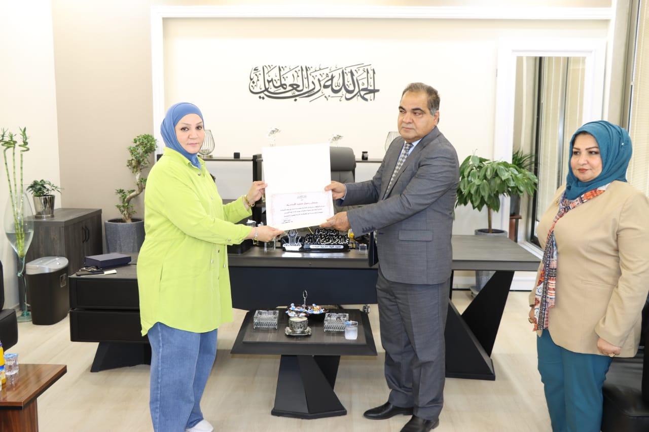 تنفيذاً لتوجيهات الاستاذ الدكتور وعد محمود رؤوف رئيس جامعة تكريت وفي اطار جولاته ومتابعاته المستمرة في كليات وأروقة الجامع افتتح الاستاذ الدكتور حسن حسين ابراهيم مساعد رئيس الجامعة للشؤون العلمية في كلية التربية للبنات معرض الابداعات النسوية الذي تضمن العديد من الأعمال اليدوية والنتاجات النسوية، وكان في استقباله السيدة عميد الكلية الاستاذ الدكتورة نجلاء عبدالحسين واجرى برفقتها على هامش الافتتاح جولة في اقسام وقاعات الكلية للاطلاع على واقعها وسير العمل والوقوف على اهم المشاكل التي تواجه الكلية لايجاد الحلول المناسبة لها. وفي ختام الزيارة اثنى مساعد رئيس الجامعة على الجهود المبذولة من قبل عمادة الكلية متمنيا الموفقية للجميع.
