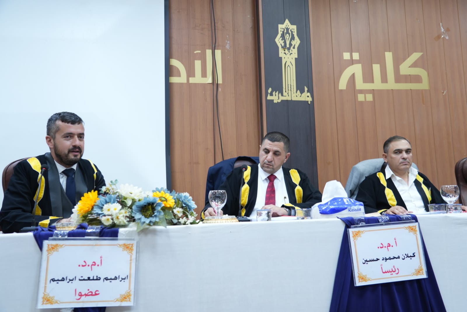 تنفيذا لتوجيهات الاستاذ الدكتور وعد محمود رؤوف رئيس جامعة تكريت وضمن الجولات التفقدية والمتابعات المستمرة لكليات واقسام ومفاصل الجامعة حضر الاستاذ الدكتور حسن حسين ابراهيم مساعد رئيس الجامعة للشؤون العلمية مناقشة رسالة ماجستير في كلية الاداب قسم الترجمة للطالبة (پارلا شاكر خورشيد ) ، واثنى مساعد رئيس الجامعة على جهود الطالبة والاستاذ المشرف وثمن دور الاساتذة اعضاء لجنة المناقشة وملاحظاتهم الدقيقة التي اكدت المستوى العلمي الرصين للجامعة