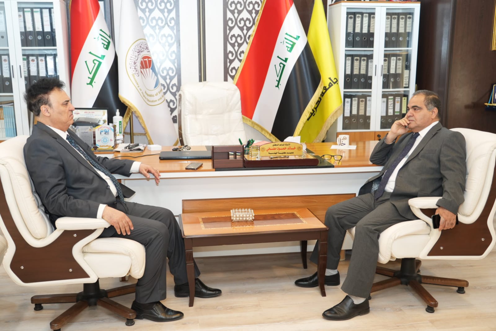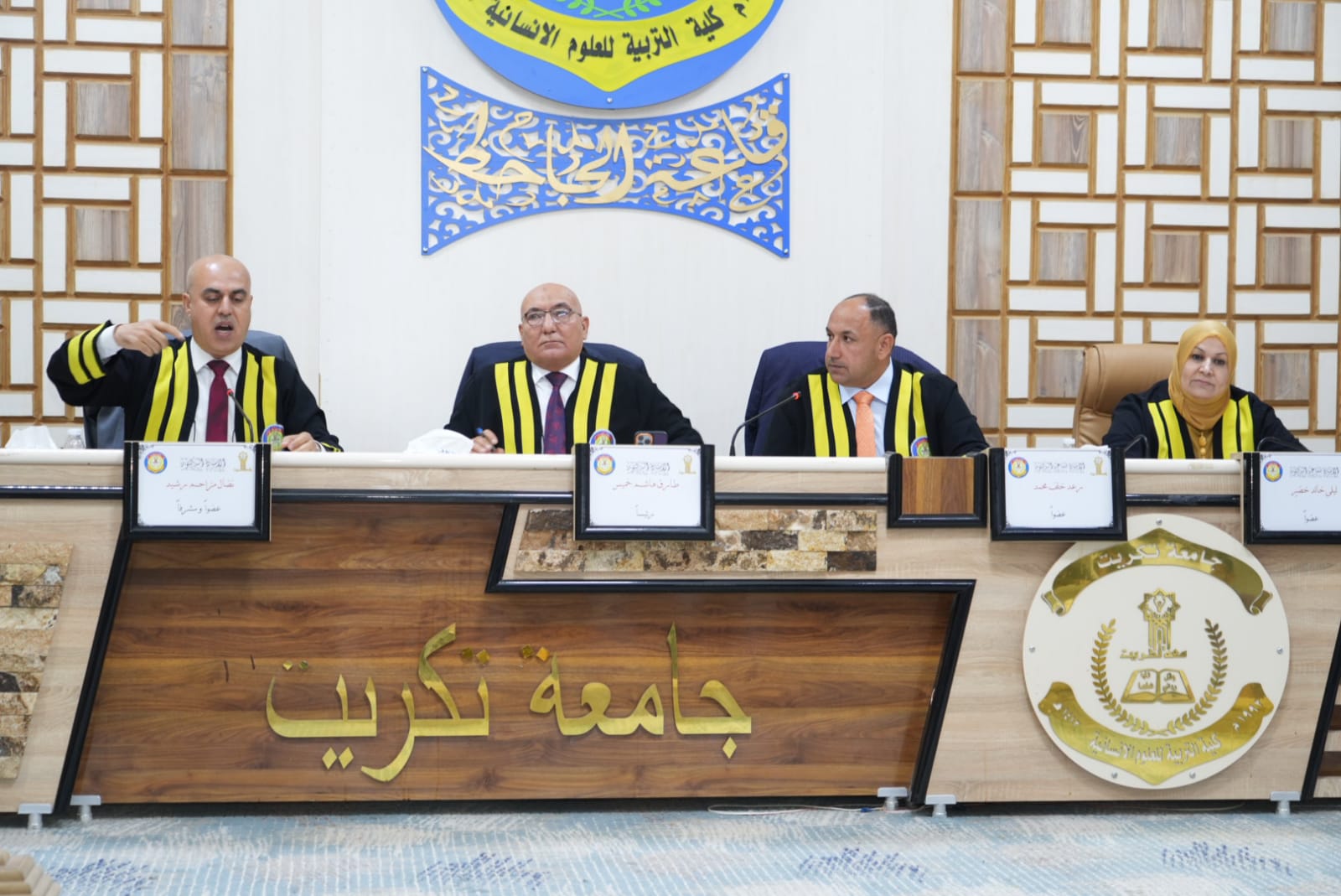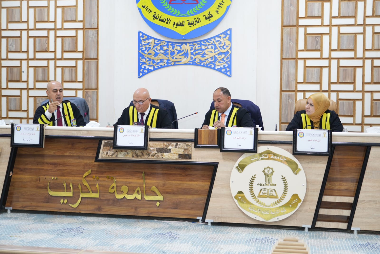 مساعدا رئيس الجامعة للشؤون العلمية والإدارية يحضرا مناقشتين علميتين في كلية التربية للعلوم الإنسانية وكلية الهندسة.