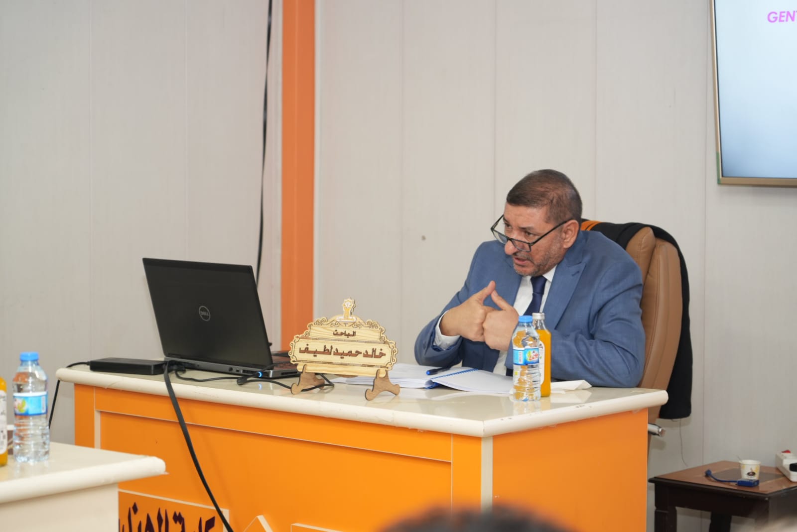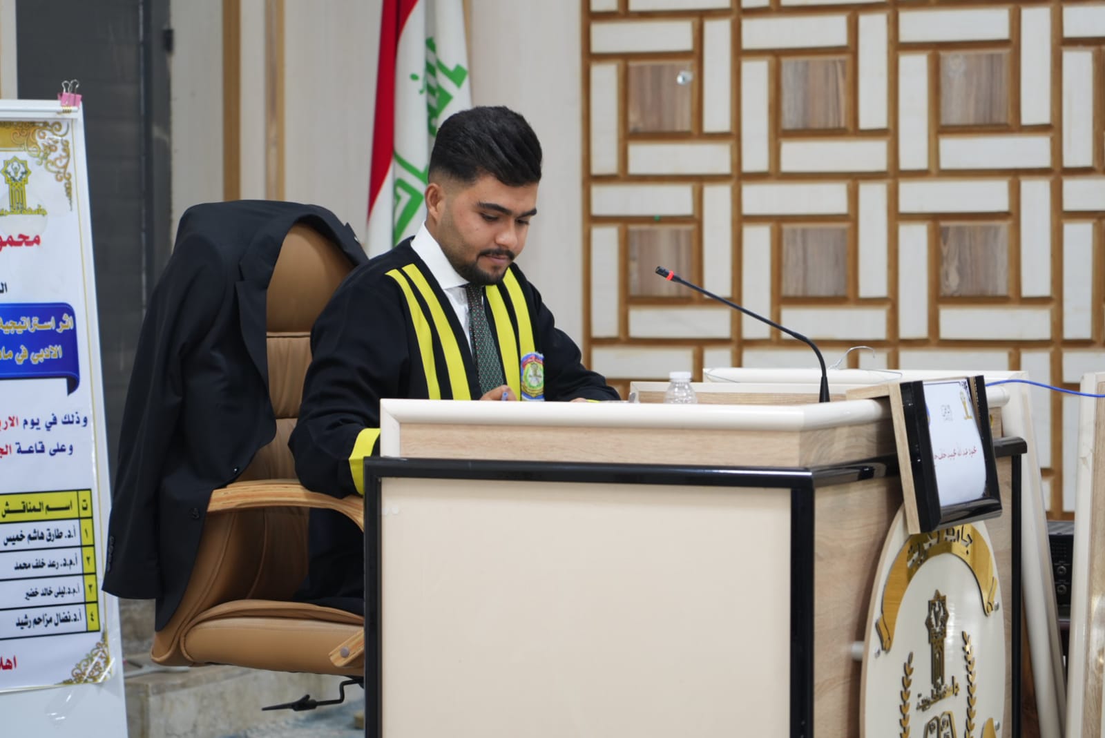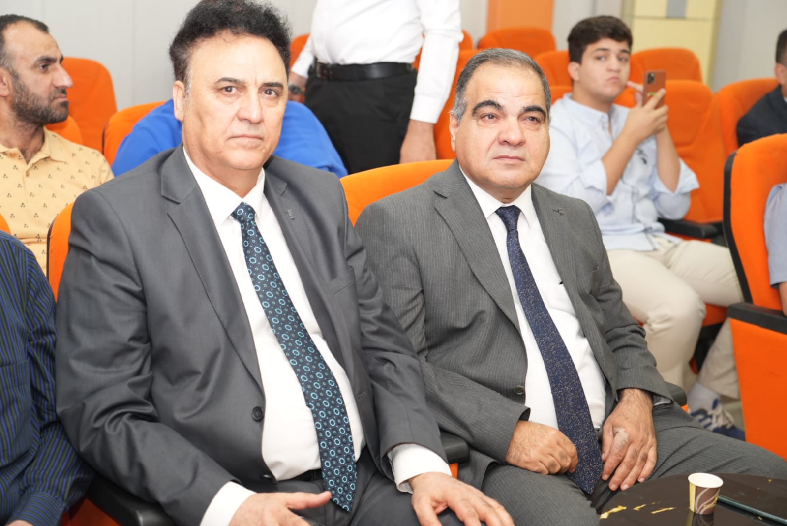 مساعدا رئيس الجامعة للشؤون العلمية والإدارية يحضرا مناقشتين علميتين في كلية التربية للعلوم الإنسانية وكلية الهندسة.