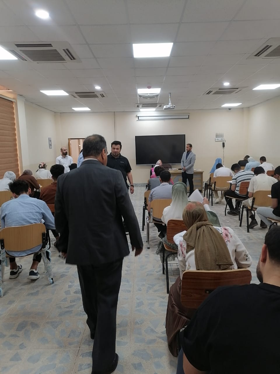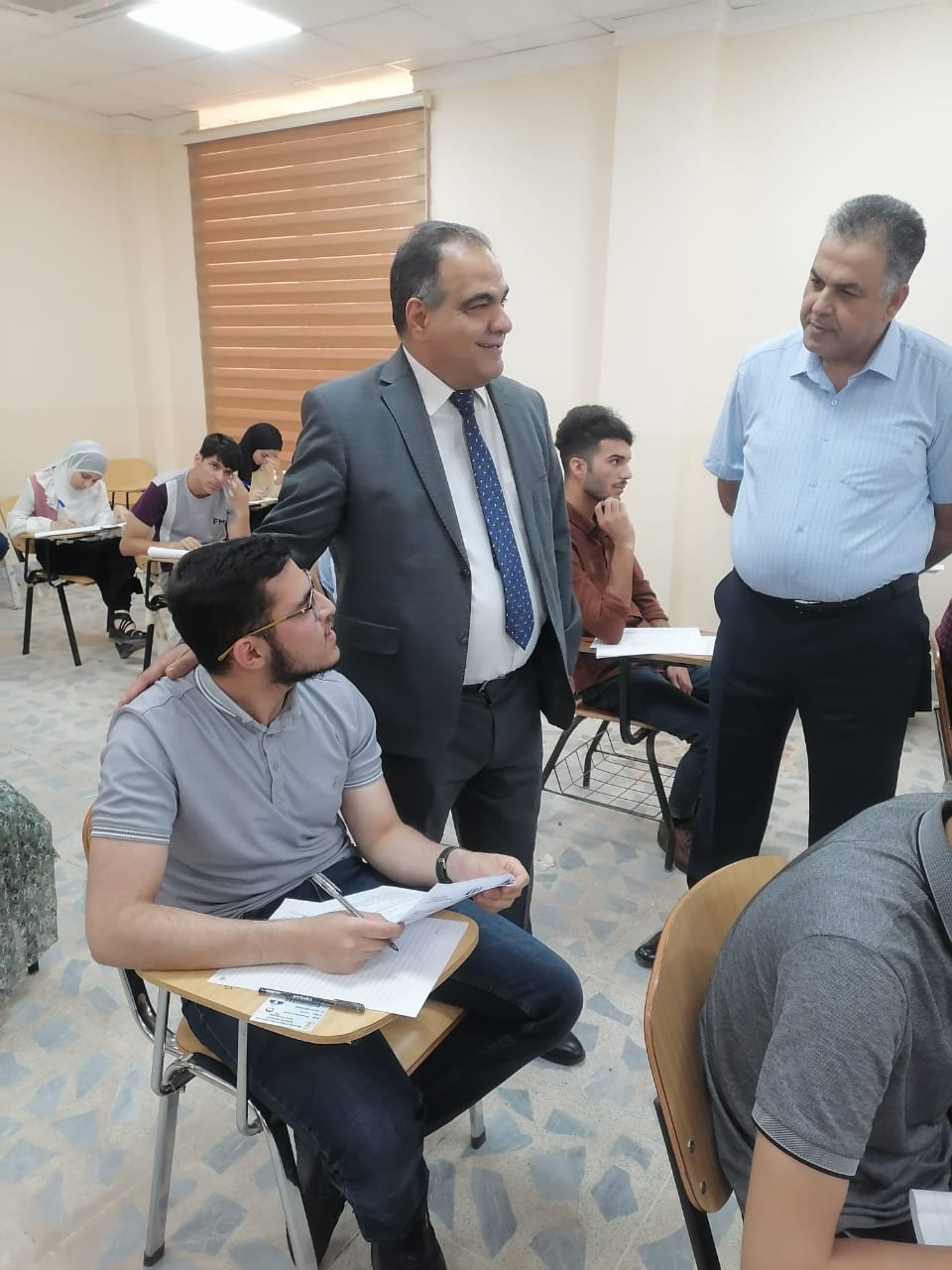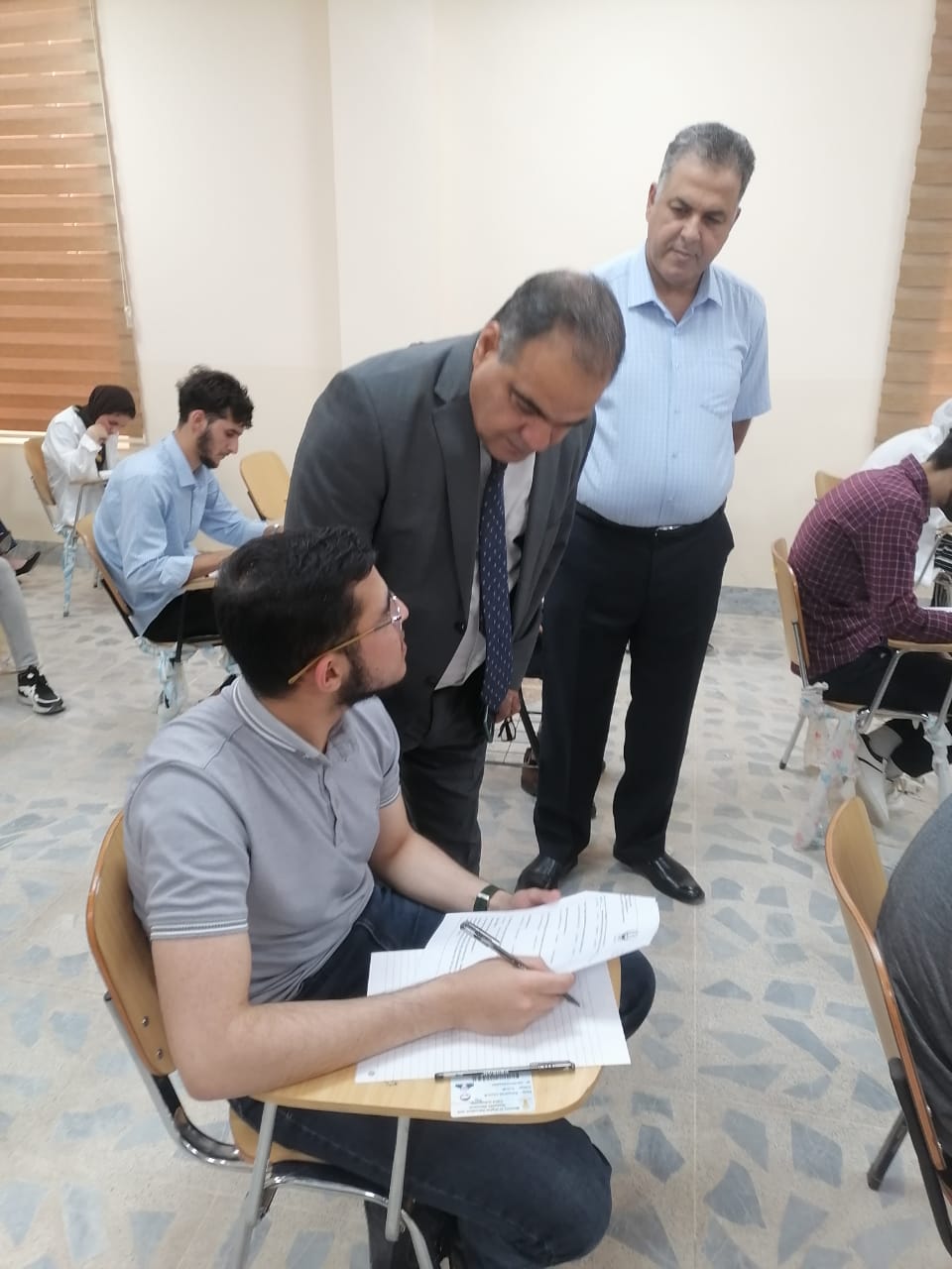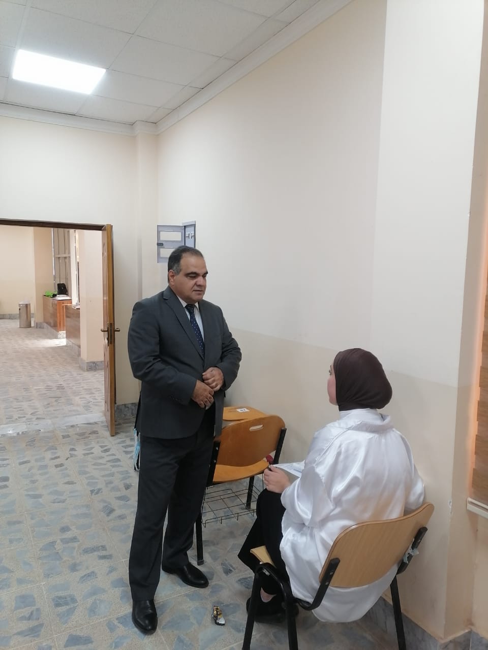 تنفيذا لتوجيهات الاستاذ الدكتور وعد محمود رؤوف رئيس جامعة تكريت تفقد الاستاذ الدكتور حسن حسين ابراهيم مساعد رئيس الجامعة للشؤون العلمية اليوم السبت الموافق 4/5/0224 سير العلمية النهائية في كلية الطب حيث تجول داخل القاعات الامتحانية واطلع على طبيعة الاسئلة ومدى ملائمتها للمناهج الدراسية وتابع سلاسة سير الامتحانات واجراءاتها واثنى على الجهود المبذولة من قبل عمادة الكلية في التنظيم والالتزام بالتعليمات وضوابط وزارة التعليم العالي والبحث العلمي .