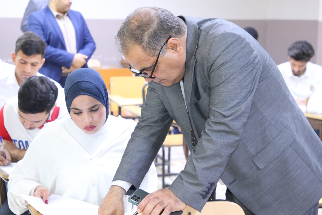 تنفيذا لتوجيهات الاستاذ الدكتور وعد محمود رؤوف رئيس جامعة تكريت تفقد الاستاذ الدكتور حسن حسين ابراهيم مساعد رئيس الجامعة للشؤون العلمية يرافقه وفد من وزارة التعليم العالي والبحث العلمي والسيد مدير قسم البعثات والعلاقات الثقافية سير الامتحانات النهائية في كليتي الصيدلة والقانون حيث تجول في القاعات الامتحانية واطلع على طبيعة الاسئلة ومدى ملائمتها للمناهج الدراسية وتابع مدى انسيابية الاجراءات وسير الامتحانات واجراءاتها.