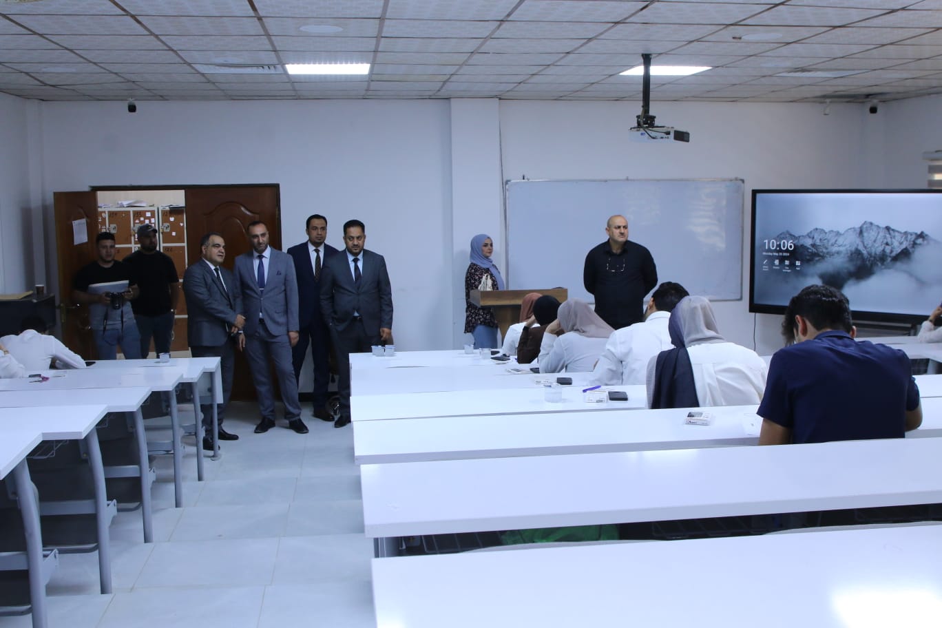 وفي ختام الجولة اثنى على الجهود المبذولة من قبل عمادة الكليتين في التنظيم والالتزام بالتعليمات وضوابط وتوجيهات وزارة التعليم العالي والبحث العلمي.