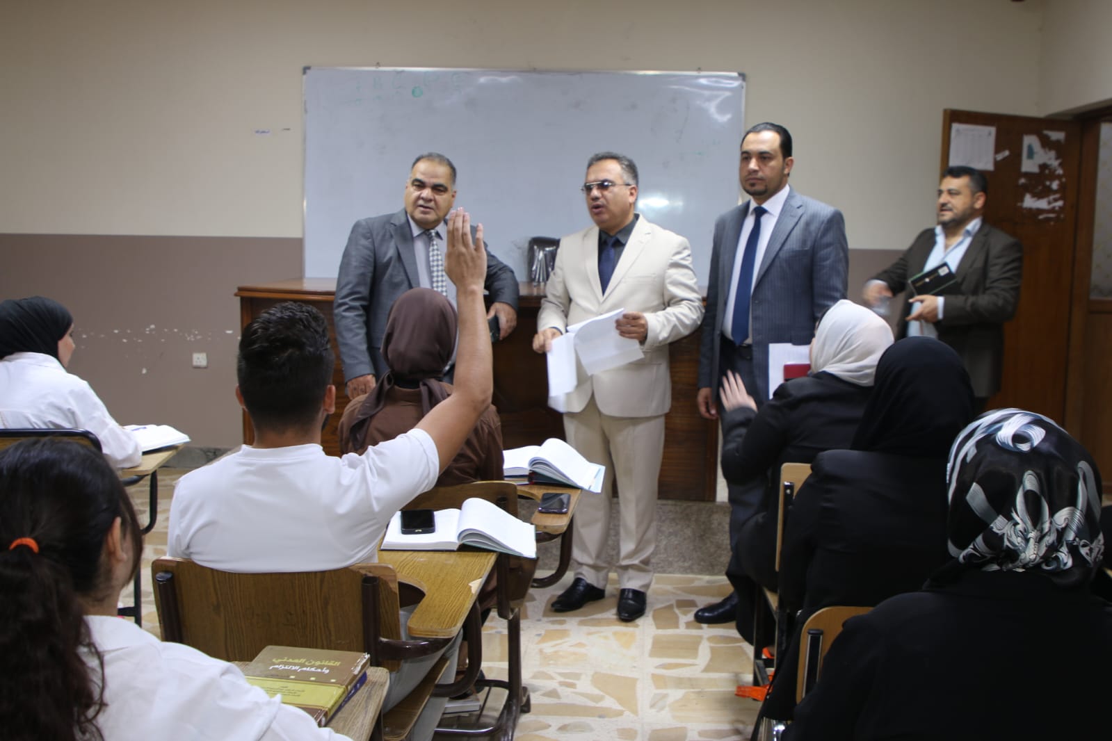 تنفيذا لتوجيهات الاستاذ الدكتور وعد محمود رؤوف رئيس جامعة تكريت زار الاستاذ الدكتور حسن حسين ابراهيم مساعد رئيس الجامعة للشؤون العلمية كلية القانون حيث حضر مناقشة رسالة ماجستير فيها واثنى على جهود الطالب المناقش والاساتذة المشرفين وثمن دور الاساتذة اعضاء لجنة المناقشة وملاحظاتهم قام بعدها بجولة في عدد من الاقسام والقاعات الدراسية بالكلية اطلع خلالها على سير العمل فيها والوقوف عل اهم المشاكل والمعوقات وايجاد الحلول المناسبة لها