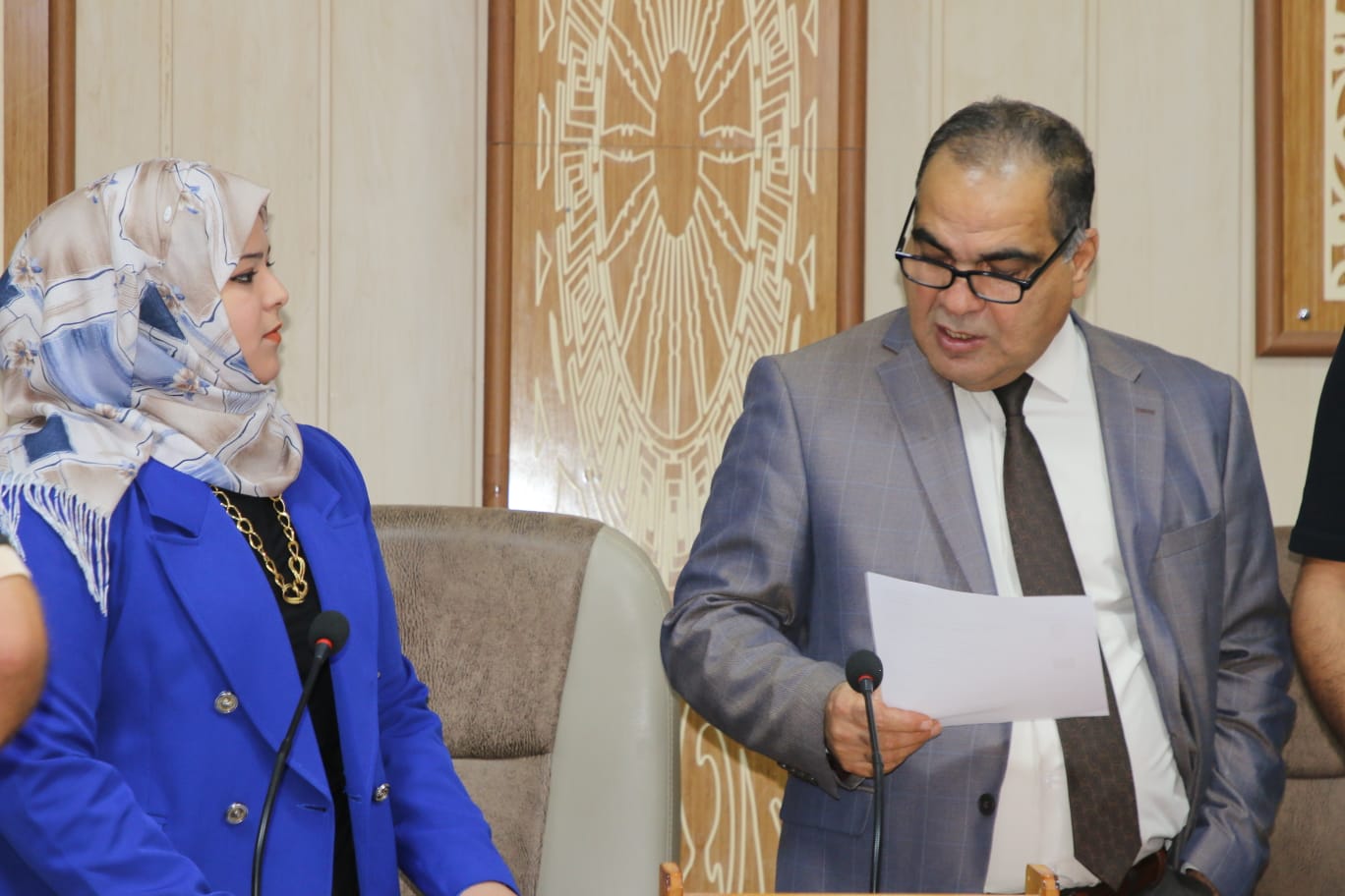 انتقل المساعد العلمي بعدها الى كلية الآداب للاطلاع على سير عمل اللجان الامتحانية فيها بأقسام الاعلام والترجمة وفي ختام الجولة اثنى على الجهود المبذولة من قبل عمادة الكليتين في التنظيم والالتزام بالتعليمات وضوابط وتوجيهات وزارة التعليم العالي والبحث العلمي.