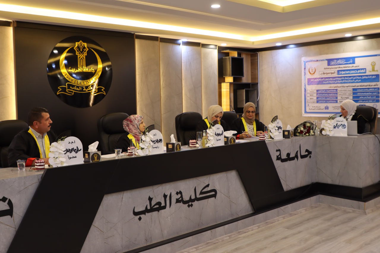 نوقشت في كلية الطب جامعة تكريت رسالة الماجستير الموسومة (دور النتروفيل جيلاتنيز المرتبط بالليبوكالين وهرمون الميلاتونين عند مرضى المتلازمة الايضية في مدينة تكريت)