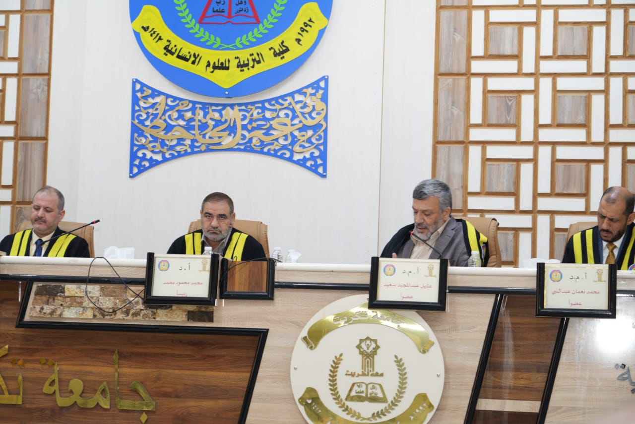 ضمن جولاته المستمرة في كليات واقسام ومفاصل الجامعة حضر الاستاذ الدكتور وعد محمود رؤوف رئيس جامعة تكريت مناقشة اطروحة الدكتوراه للطالب عبد الله خلف لطيف الجبوري من كلية التربية للعلوم الانسانية قسم علوم القرآن عن أطروحته الموسومة (مقاصد الشريعة في أسباب النزول في كتاب لباب النقول للامام السيوطي ( ت٩١١ هـ ) من سورة البقرة الى سورة التوبة) احتضنتها قاعة الجاحظ بالكلية وقد اثنى رئيس الجامعة على دقة الملاحظات العلمية التي طرحتها لجنة المناقشة وصوابها وبارك الجهود المبذولة في هذه الرسالة من قبل الطالب ولجنة المناقشة والاستاذ المشرف