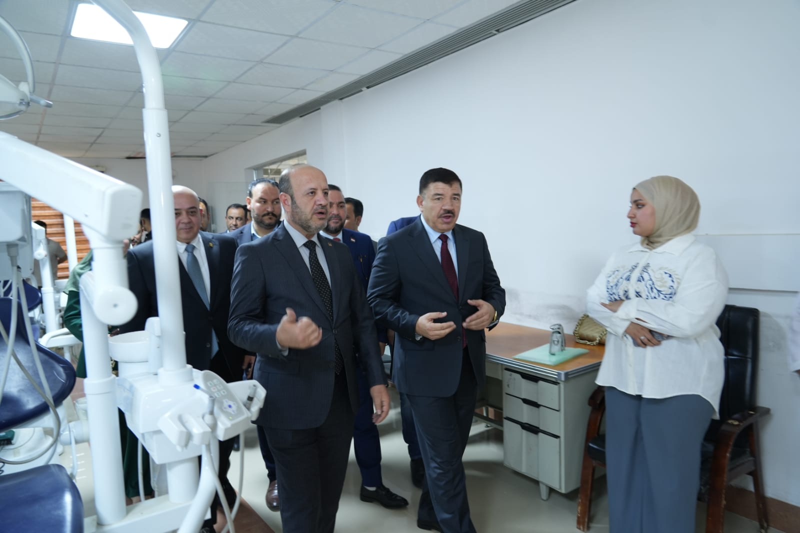 بعدها اصطحبهم رئيس الجامعة بجولة في اروقة الجامعة ضمت كليات طب الاسنان وبعض الكليات العلمية والانسانية ومختبراتها