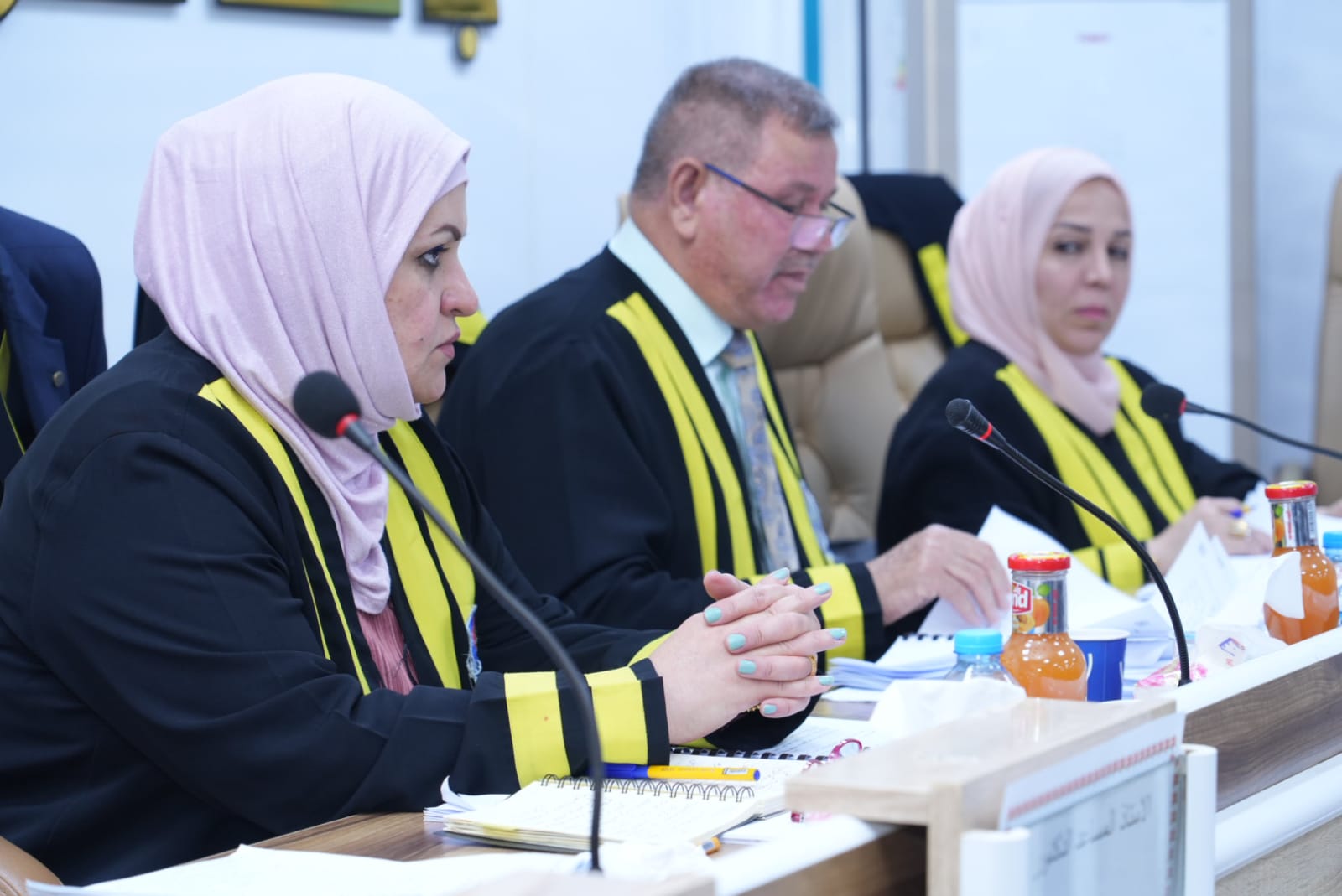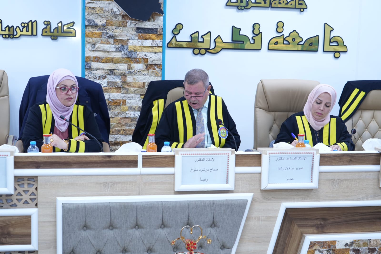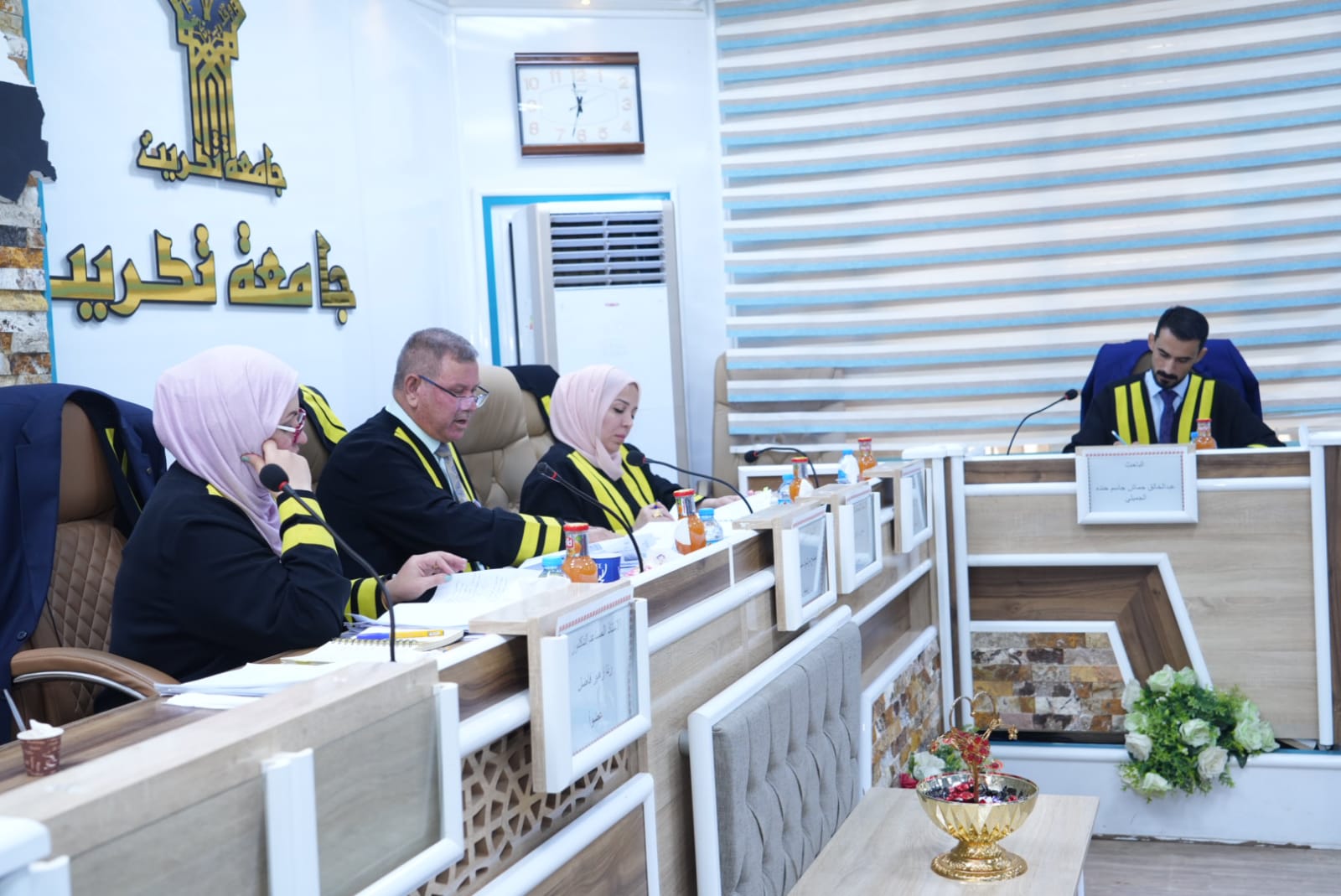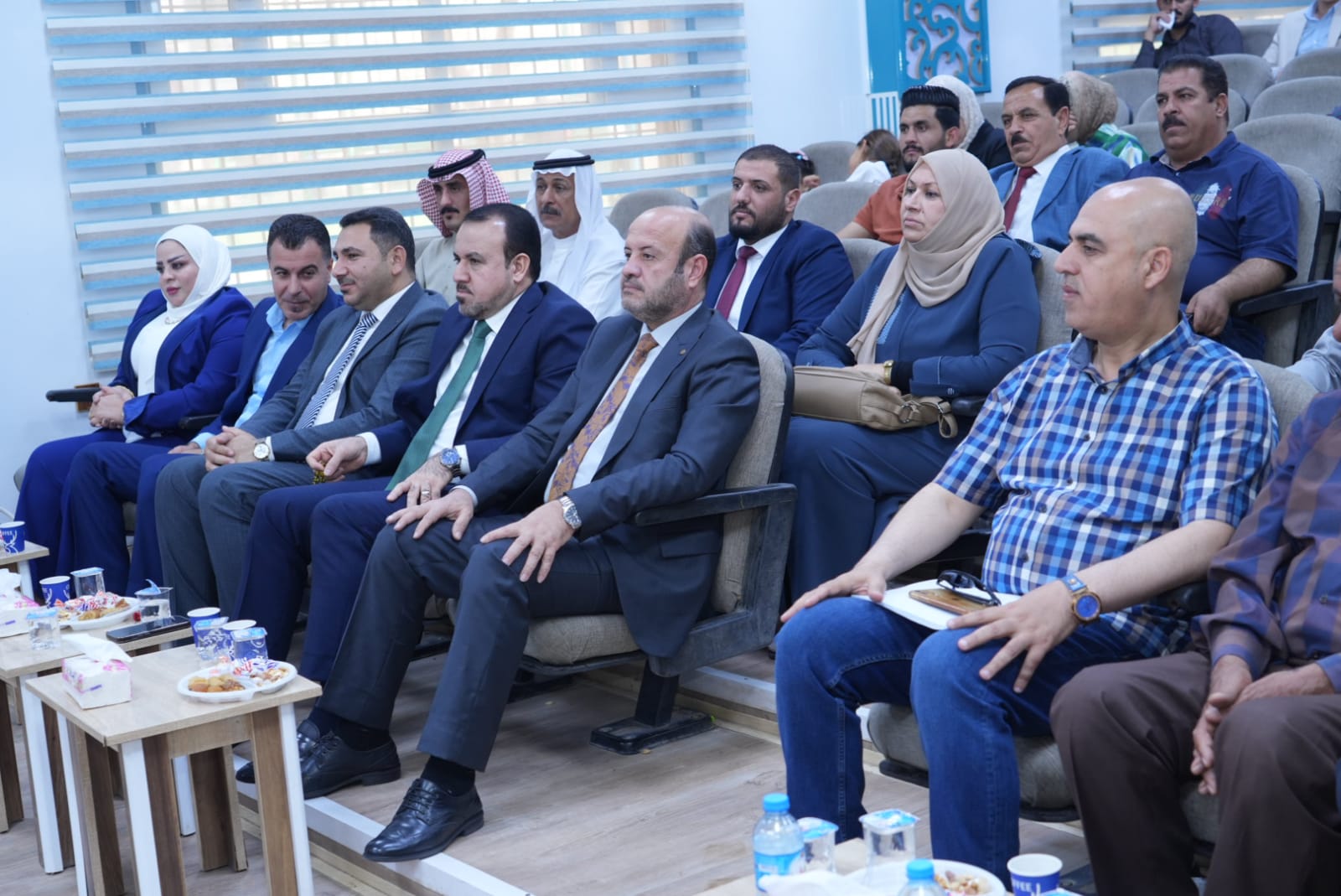 انتقل بعدها رئيس الجامعة مع الضيوف الى كلية التربية للعلوم الانسانية لحضور مناقشة رسالة الماجستير للطالب عبدالخالق حماش جاسم.